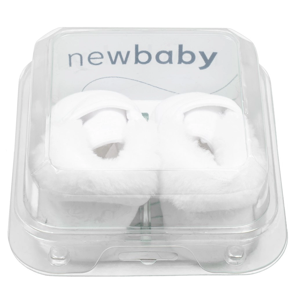 Zachte en warme babyslofjes NEW BABY, ideaal voor de wintermaanden en voor een feestelijke doop. Ze bieden een warme fleece voering, makkelijke klittenbandsluiting en een lichte, buigzame zool voor maximaal comfort voor je kleintje. De slofjes zijn niet bedoeld om mee te lopen, maar houden de voetjes heerlijk warm en comfortabel, thuis en onderweg.