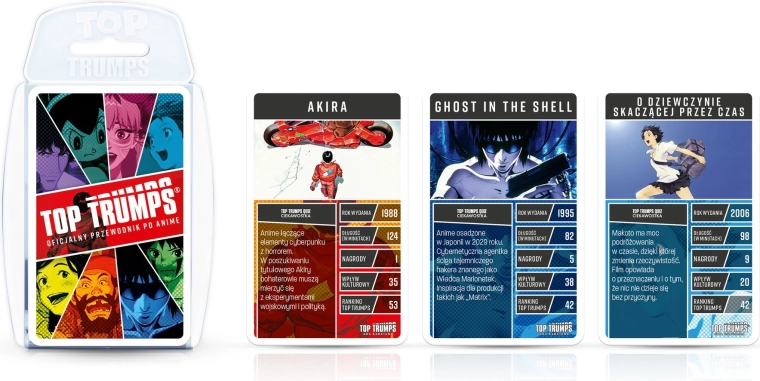 Vergelijk categorieën zoals jaar van uitgave, lengte in minuten, onderscheidingen, culturele impact en Top Trumps-score. Word de kampioen en verzamel alle kaarten van je tegenstanders!