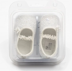 De zool is gemaakt van dun synthetisch PVC zonder BPA, waardoor de slofjes zeer licht zijn en geschikt voor gebruik binnenshuis of in de kinderwagen. Het product is niet bedoeld om mee te lopen, maar houdt de babyvoetjes heerlijk warm en beschermd. Geleverd in een praktisch doosje, ook ideaal als cadeau.