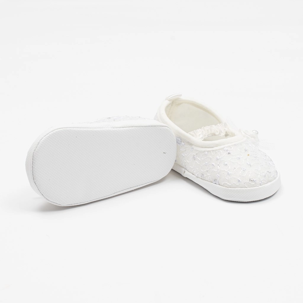 De kanten ballerina's NEW BABY vallen op door hun verfijnde look en comfortabele pasvorm voor kleine prinsesjes. Dankzij de zachte constructie sluiten ze goed aan op het voetje en bieden tegelijk voldoende ruimte voor een natuurlijke teenbeweging en spierontwikkeling. De beige kleur is makkelijk te combineren met zowel dagelijkse als feestelijke outfits.