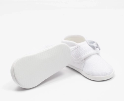 Deze schattige New Baby slofjes in het wit met een decoratief strikje zijn een geweldige keuze voor dagelijks gebruik van je kleintje. Dankzij de klittenbandsluiting zijn ze eenvoudig aan te trekken en blijven ze goed aan het voetje zitten. Lichte constructie en een ruime binnenkant geven teentjes en spieren voldoende ruimte voor natuurlijke beweging.