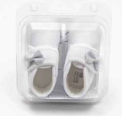 De slofjes hebben een dunne, zachte synthetische zool van BPA-vrij PVC, waardoor ze comfortabel zijn in de kinderwagen of thuis op het tapijt. Het product is niet bedoeld om op te lopen. Ze worden geleverd in een praktische doos, dus ook leuk als cadeautje voor kersverse ouders.