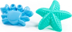 De set bevat twee praktische vormpjes met zeethema’s (bijv. zeester en krab) die kinderen eenvoudig in het zand drukken om mooie vormen te maken. Het materiaal is makkelijk afwasbaar en geschikt voor spelen buiten en in het water.