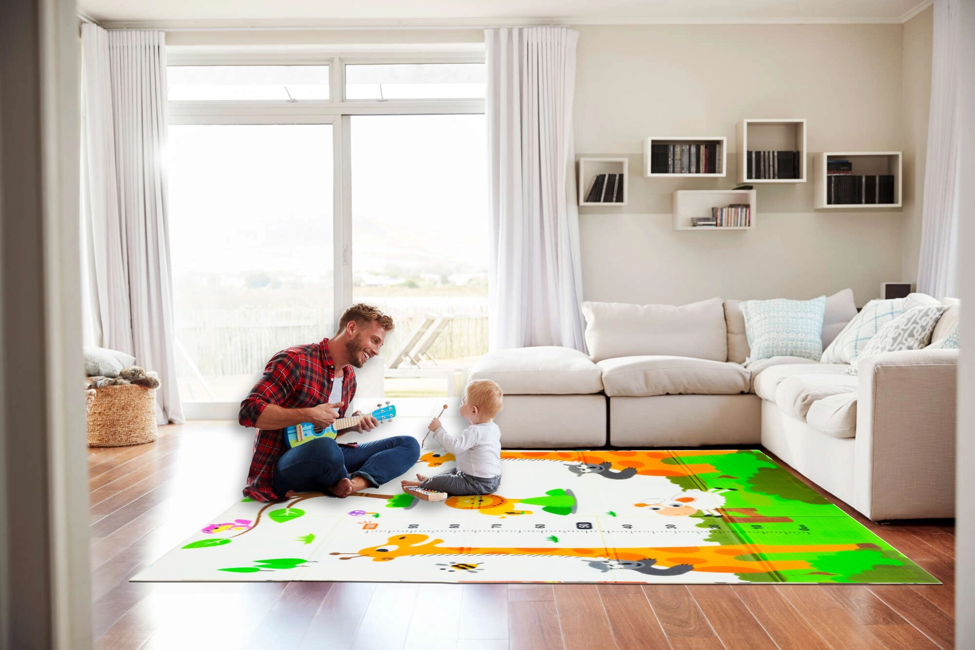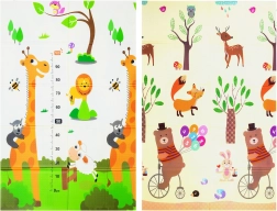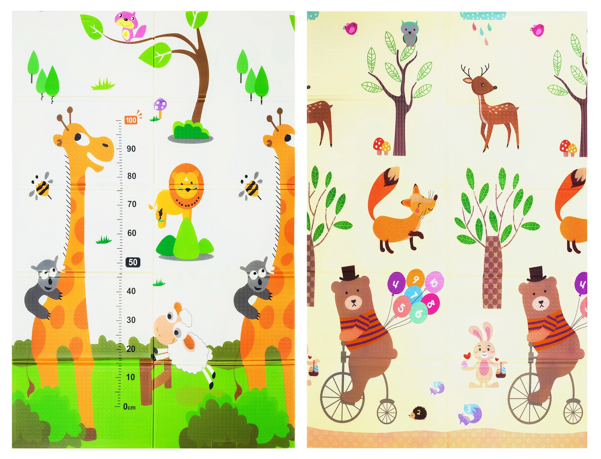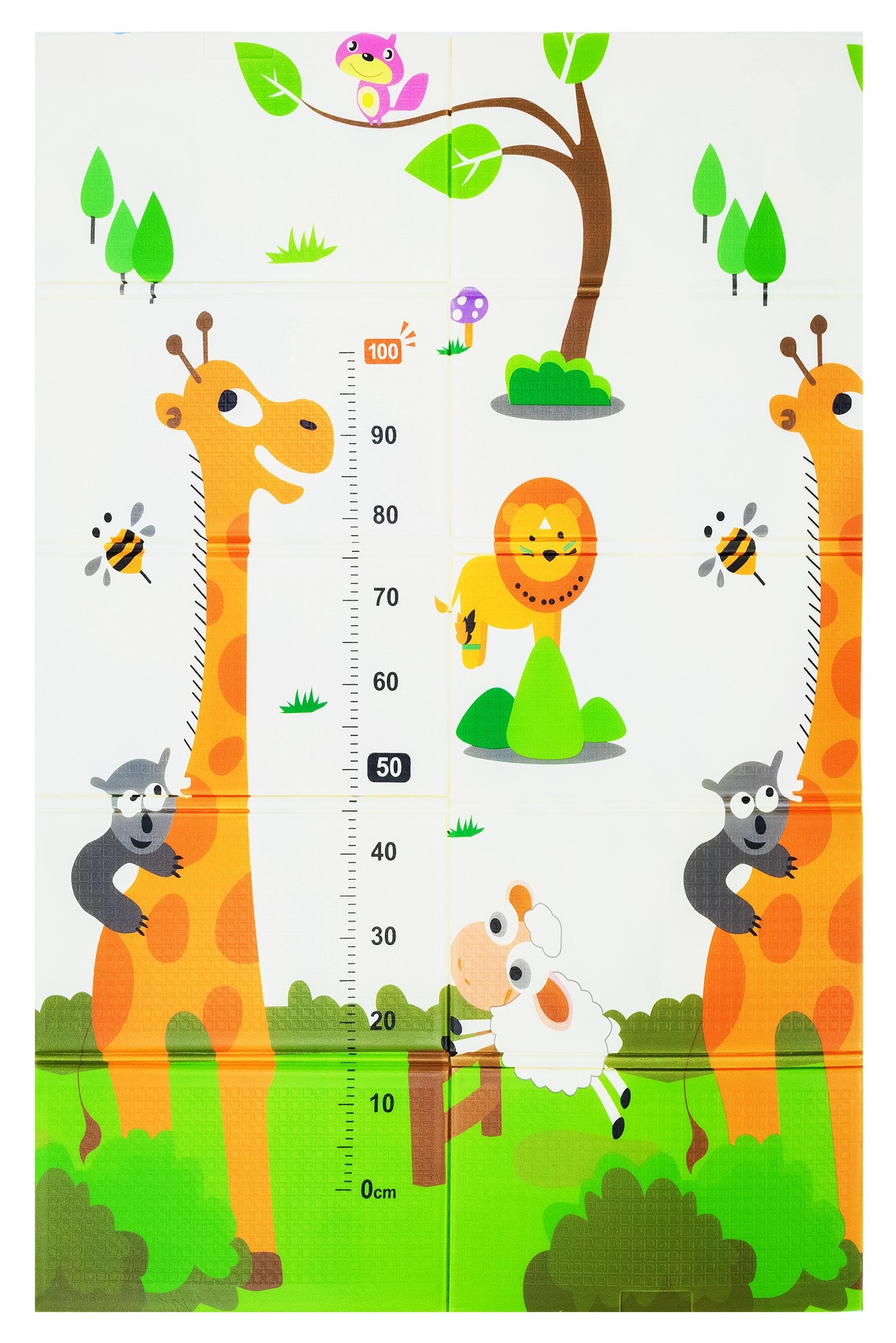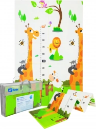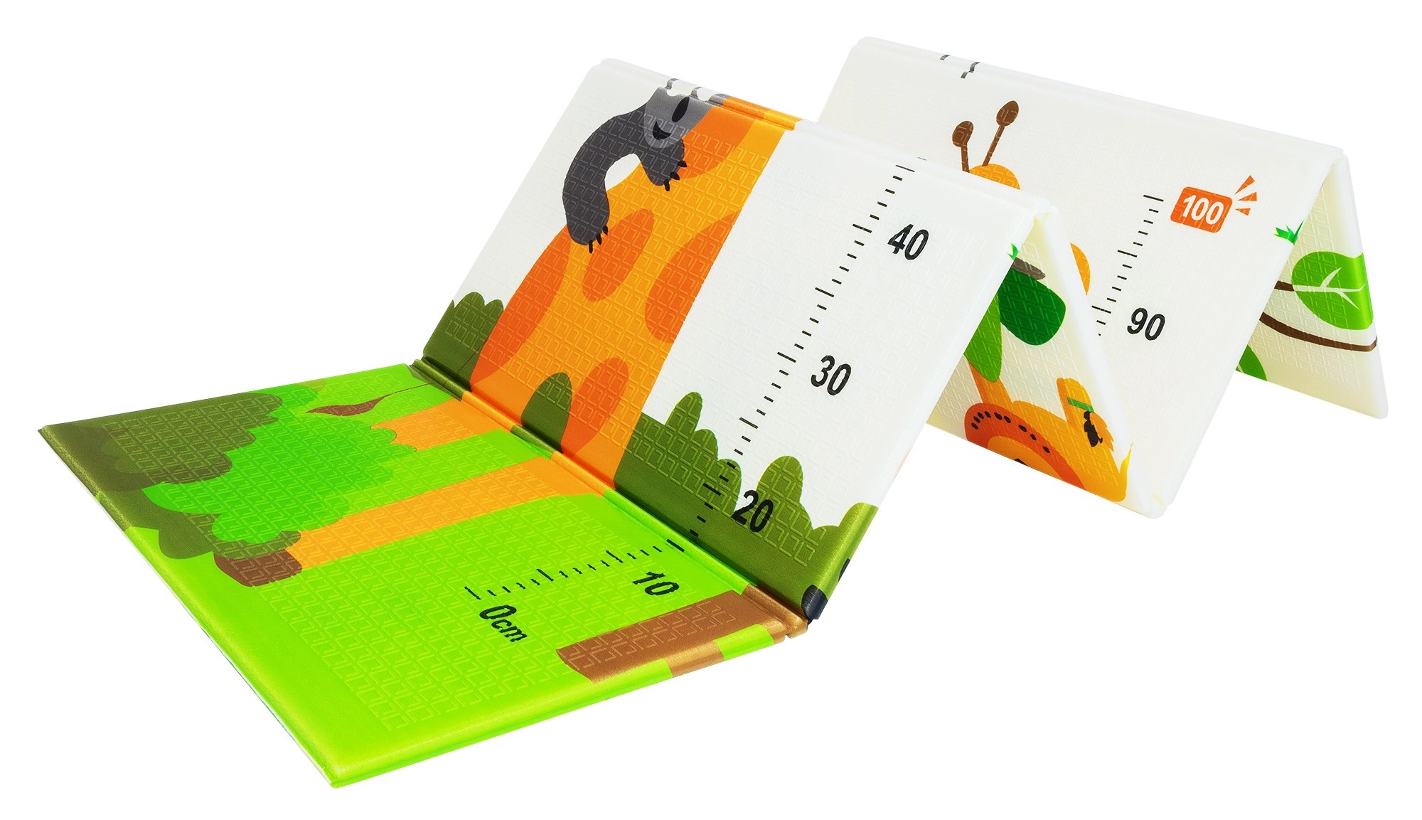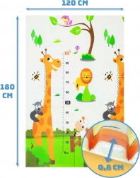 Ontdek de praktische en stijlvolle HUMBI-mat die een veilige en comfortabele ruimte creëert voor spelen, rusten en de eerste kruippogingen. De afmetingen 120 × 180 × 0,8 cm bieden volop ruimte, terwijl het schokdempende XPE-schuim beschermt bij vallen en uitstekend tegen kou isoleert vanaf de vloer. Dankzij het dubbelzijdige design pas je de look van je interieur eenvoudig aan – één zijde met schattige dieren, de andere met giraffen en een praktische groeimeter.