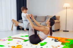 Dik XPE-schuim dempt schokken en isoleert tegen kou; de fijne textuur voorkomt wegglijden en ondersteunt de sensomotorische ontwikkeling tijdens spelen en de eerste stapjes.