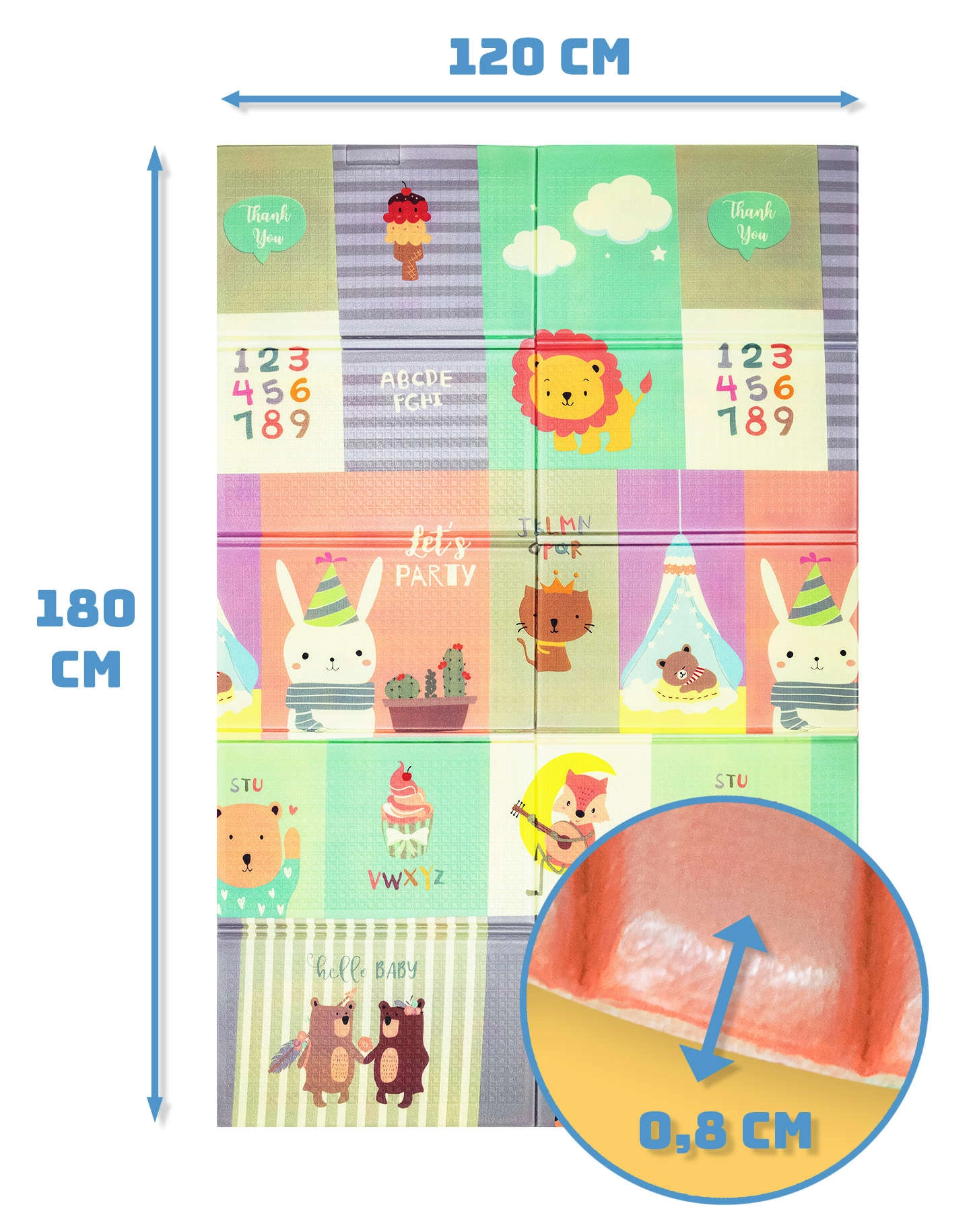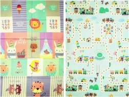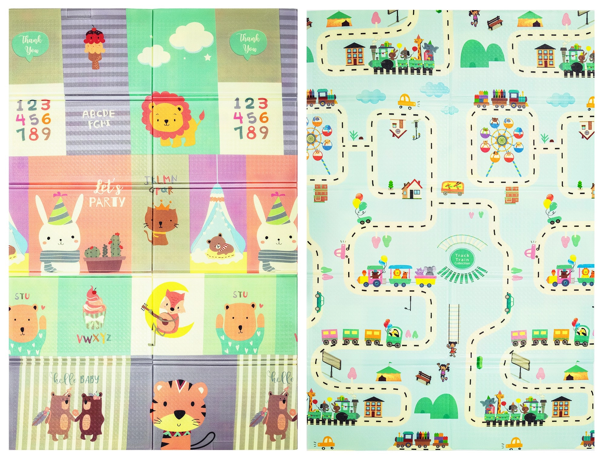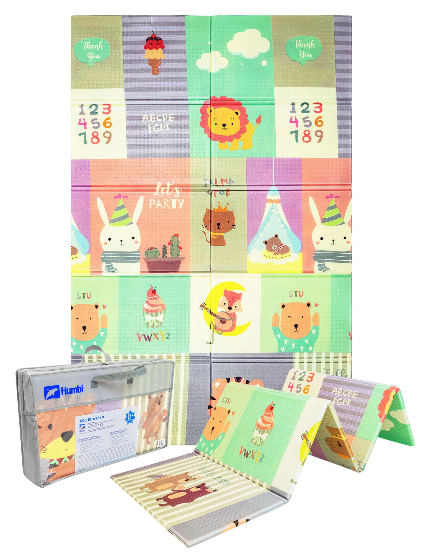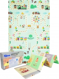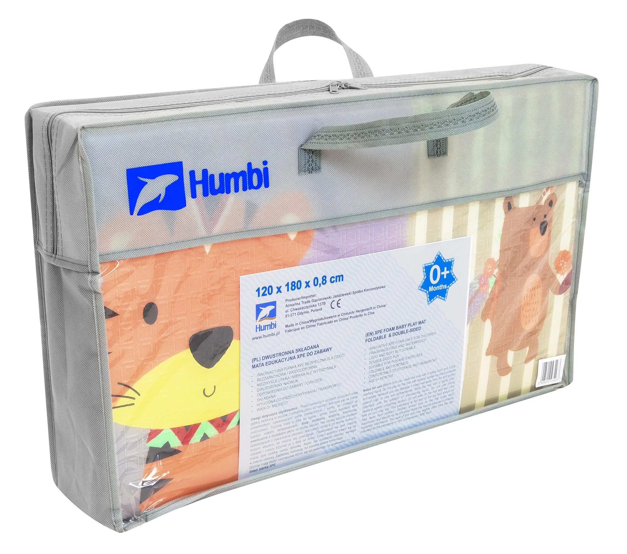 Het HUMBI speelkleed van hoogwaardig XPE-schuim is ideaal voor de kinderkamer, woonkamer en ook voor in de tuin. Dankzij de dikte van 0,8 cm isoleert het uitstekend tegen kou van de vloer en dempt het tegelijkertijd schokken bij vallen. Het dubbelzijdige design biedt aan de ene kant schattige dieren in pastelkleuren en aan de andere kant kleurrijke straatjes – perfect voor plezier en zintuiglijke ontwikkeling.