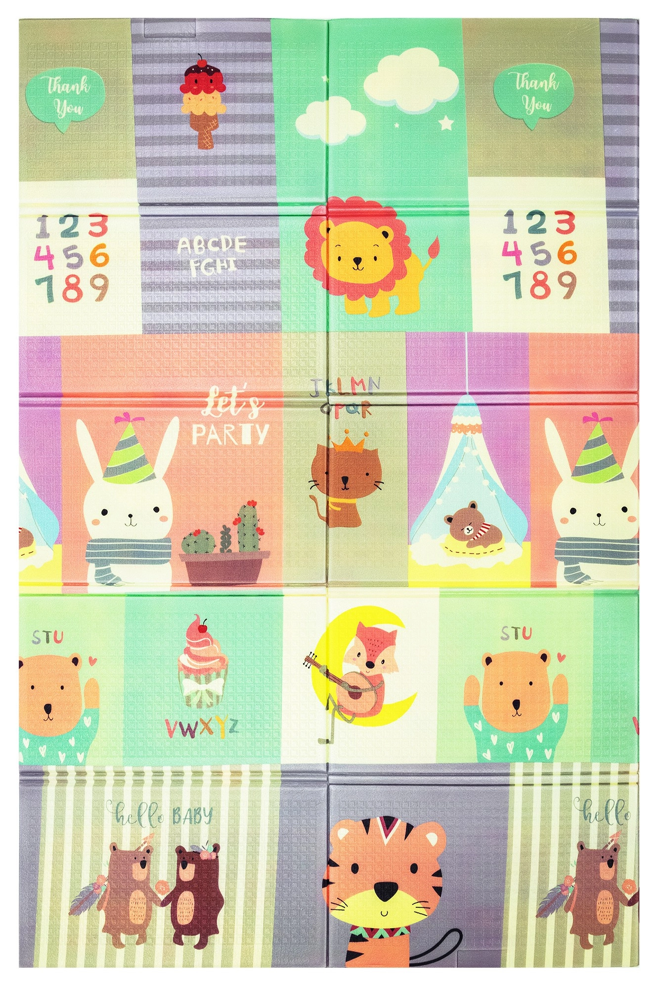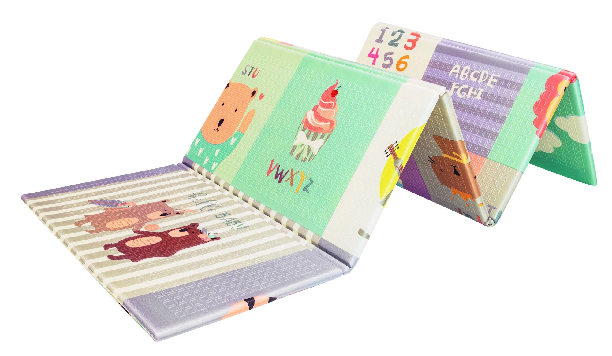De mat is licht, snel op te vouwen en dankzij de meegeleverde tas met rits neem je hem gemakkelijk mee op reis, naar een picknick of op het balkon. XPE-materiaal is geurloos, niet-toxisch, waterdicht en onderhoudsvriendelijk – afnemen met een vochtige doek is voldoende. De antislipstructuur met fijn reliëf ondersteunt veilig kruipen en lopen en stimuleert de sensorische ontwikkeling.