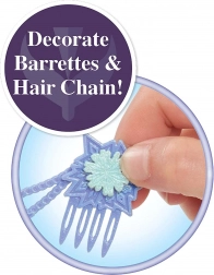 Borstel, decoratieve haarchain, 4 kristallen, 4 clipjes, 4 elastiekjes en 2 vlechtstrengen – alles wat kinderen nodig hebben om originele kapsels te creëren.