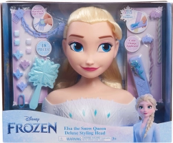 Dit deluxe stylinghoofd van ELSA uit de geliefde Disney Frozen sprookjeswereld biedt kinderen eindeloze mogelijkheden voor kapsels. De lange blonde haren zijn makkelijk te borstelen, te vlechten en te decoreren met de meegeleverde versieringen. Realistische gelaatsdetails en zachte oogmake-up versterken de magische speelervaring.