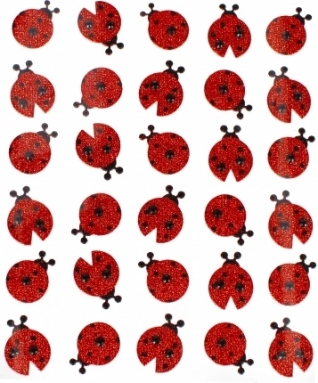 - 30 stickers in de vorm van lieveheersbeestjes met glitter