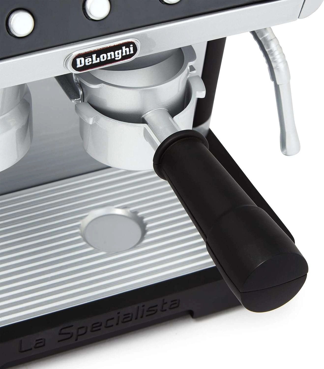 Bovenste reservoir voor “bonen”, een beweegbare hendel en knoppen bootsen het echte koffiezetproces na – inclusief maal- en doorloopgeluiden.