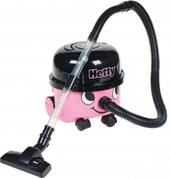 De kinderstofzuiger HETTY is een stijlvolle helper in roze-zwart met een vrolijk gezichtje, die kinderen motiveert om volwassenen na te doen en verantwoordelijkheidsgevoel en fijne motoriek ontwikkelt. Dankzij de zachte zuigfunctie kan hij kleine en lichte deeltjes opzuigen, zoals piepschuimbolletjes, confetti of kruimels.
