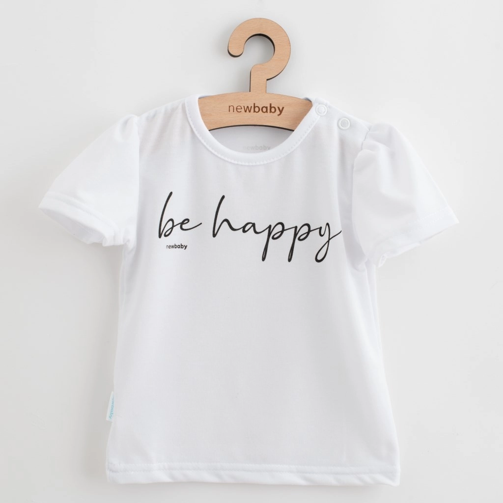 Ontdek de ideale zomeroutfit voor je baby. De tweedelige set New Baby Be Happy is gemaakt van zachte en ademende 100% katoen, vriendelijk voor de tere babyhuid en geschikt voor de hele dag. Het T‑shirt met korte mouwen is versierd met de positieve print be happy en dankzij de drukknoopjes op de schouder gaat het eenvoudig over het hoofd aan.