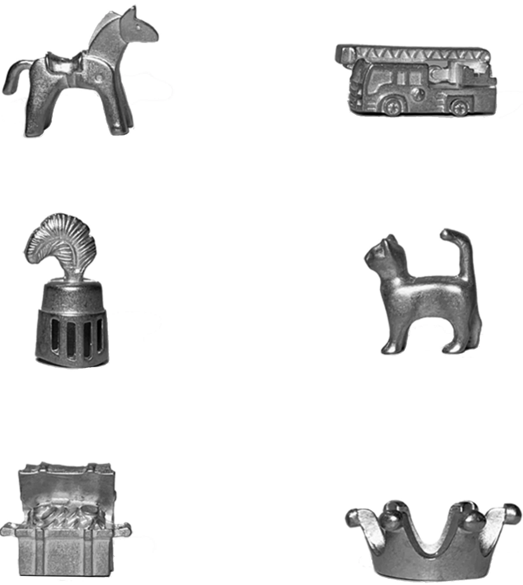 Spelbord, 16 “Kans”-kaarten, 16 “Algemeen Fonds”-kaarten, 28 “Eigendomstitel”-kaarten, 6 verzamelbare figuurtjes/pionnen, set MONOPOLY-bankbiljetten, 32 huisjes, 12 hotels, 2 dobbelstenen en spelregels.