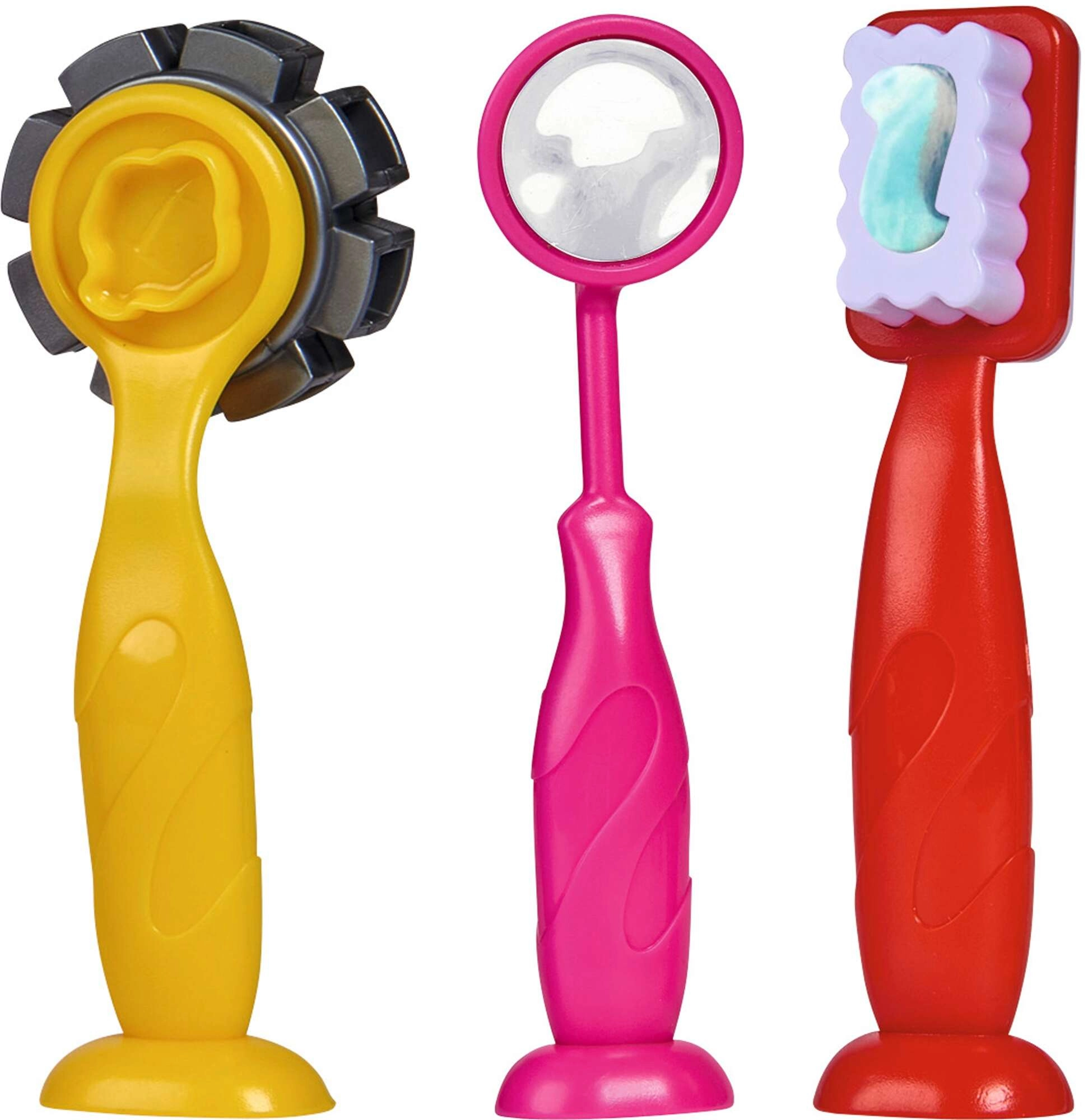 Praktische kindergereedschappen om de klei te rollen, stempelen en vormen. Kinderen ontdekken hoe een vulling en orthodontische onderdelen worden gemaakt.