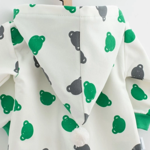 Schattige en praktische babyoverall met capuchon NEW BABY Little One die zowel comfortabel als stijlvol is. Met een all-over berenprint, een rits over de hele lengte voor gemakkelijk aan- en uitkleden, elastische boorden aan mouwen en pijpen en een capuchon met gekleurde voering en pompon. Gemaakt van aangename joggingstof, ideaal voor het hele jaar door dragen.