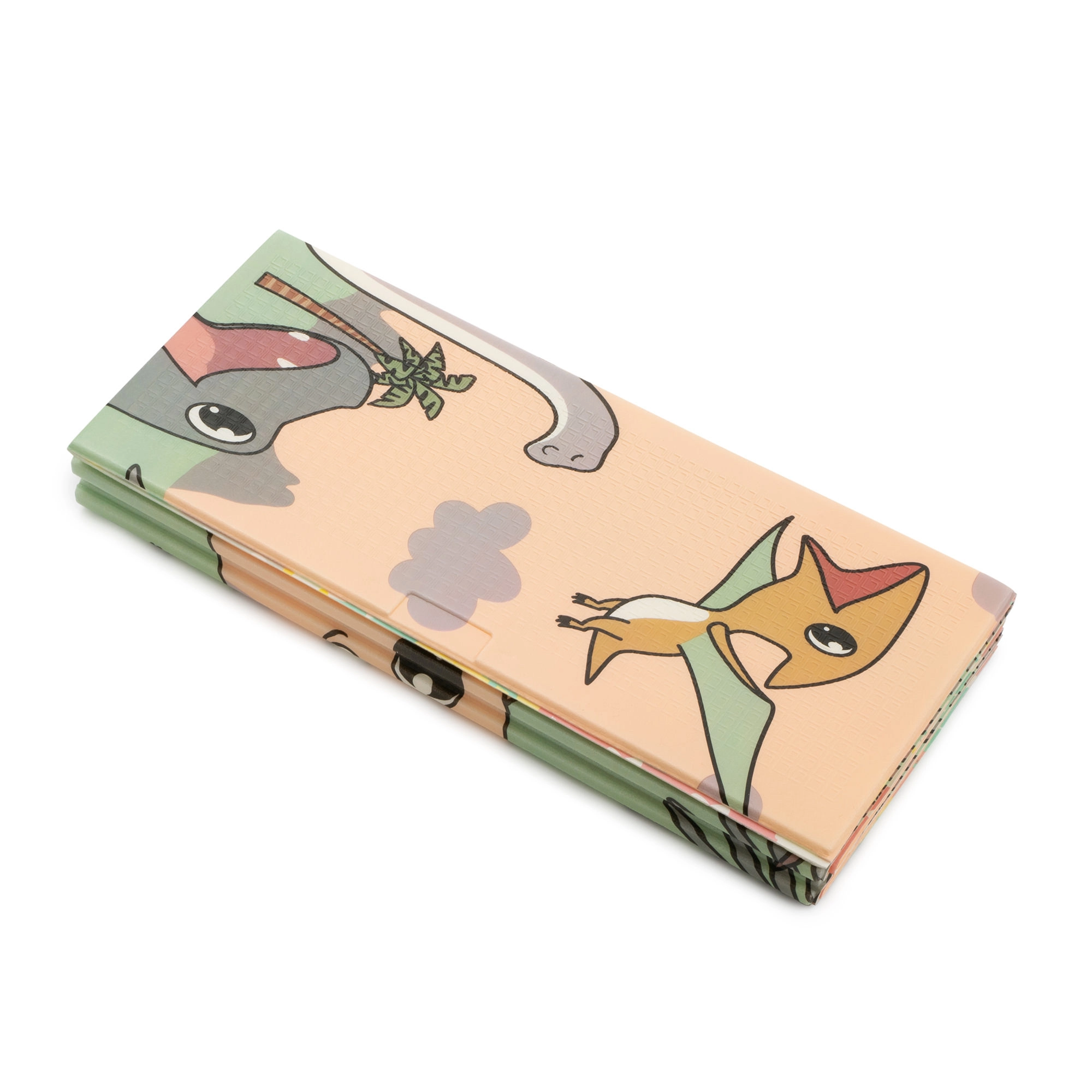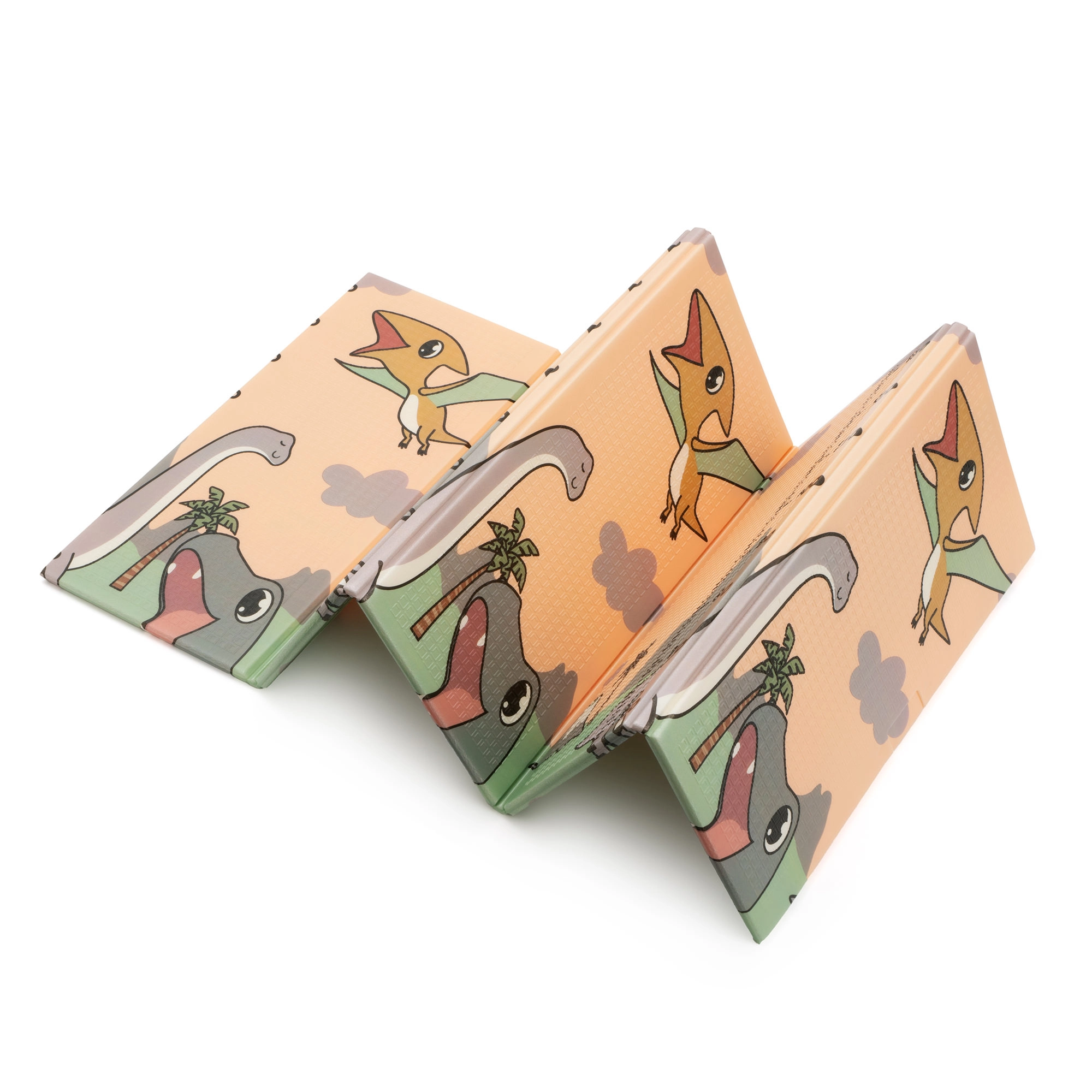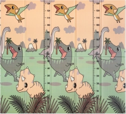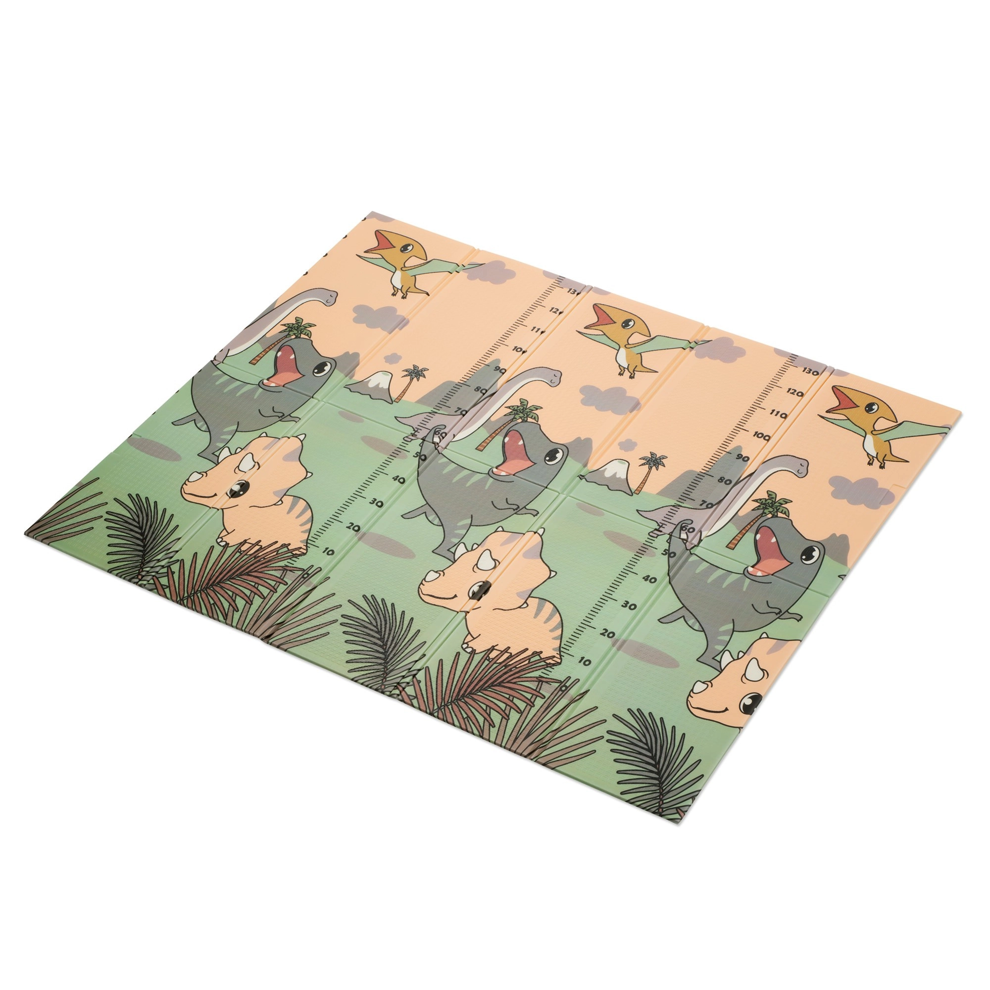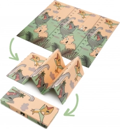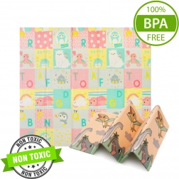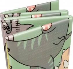 Beide zijden hebben een educatieve print in zachte pastelkleuren: schattige dinosaurussen met lengtemeter en een motief met dieren en letters. Het anti-slip reliëf ondersteunt veilig leren kruipen en lopen en stimuleert tevens de sensorische ontwikkeling. Het oppervlak is waterdicht en kan eenvoudig worden afgenomen met een vochtige doek.