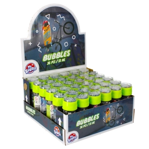 Bellenblaas BMX Skate 55 ml zorgt voor veel plezier bij het blazen van regenboogbellen. Dankzij de kwalitatieve vloeistof ontstaan stabiele, glanzende bellen die perfect zijn voor de tuin, speeltuin en kinderfeestjes. Elke dop bevat bovendien een leuk knikkerspel met doolhof, zodat er ook tijdens pauzes voor vermaak wordt gezorgd.