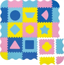 Educatieve elementen in de vorm van uitneembare vormen (cirkel, driehoek, vierkant, sterretje e.a.) stimuleren de fijne motoriek en het leren van vormen en kleuren. Onderdelen zijn eenvoudig te demonteren en op te bergen – ruimtebesparend. Voor een groter oppervlak kun je meerdere sets van hetzelfde model koppelen.