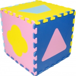 Stel een vlak speeloppervlak van 120 × 120 cm samen, een veilige speelrand van 90 × 90 cm met zijden van 15 cm, of educatieve 3D-modellen (bijv. een kubus) van de uitneembare stukjes.