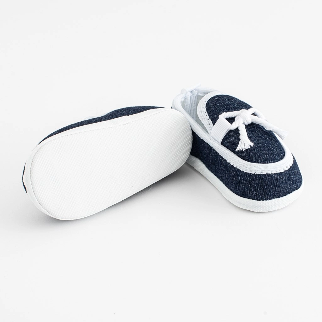 De donkerblauwe slofjes verrassen met een modern uiterlijk in mocassin‑stijl en een comfortabele pasvorm. Dankzij de ruime binnenkant voelt het babyvoetje zich vrij en knelt er niets. De dunne, flexibele zool van BPA‑vrij synthetisch PVC ondersteunt natuurlijk contact met de ondergrond.