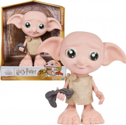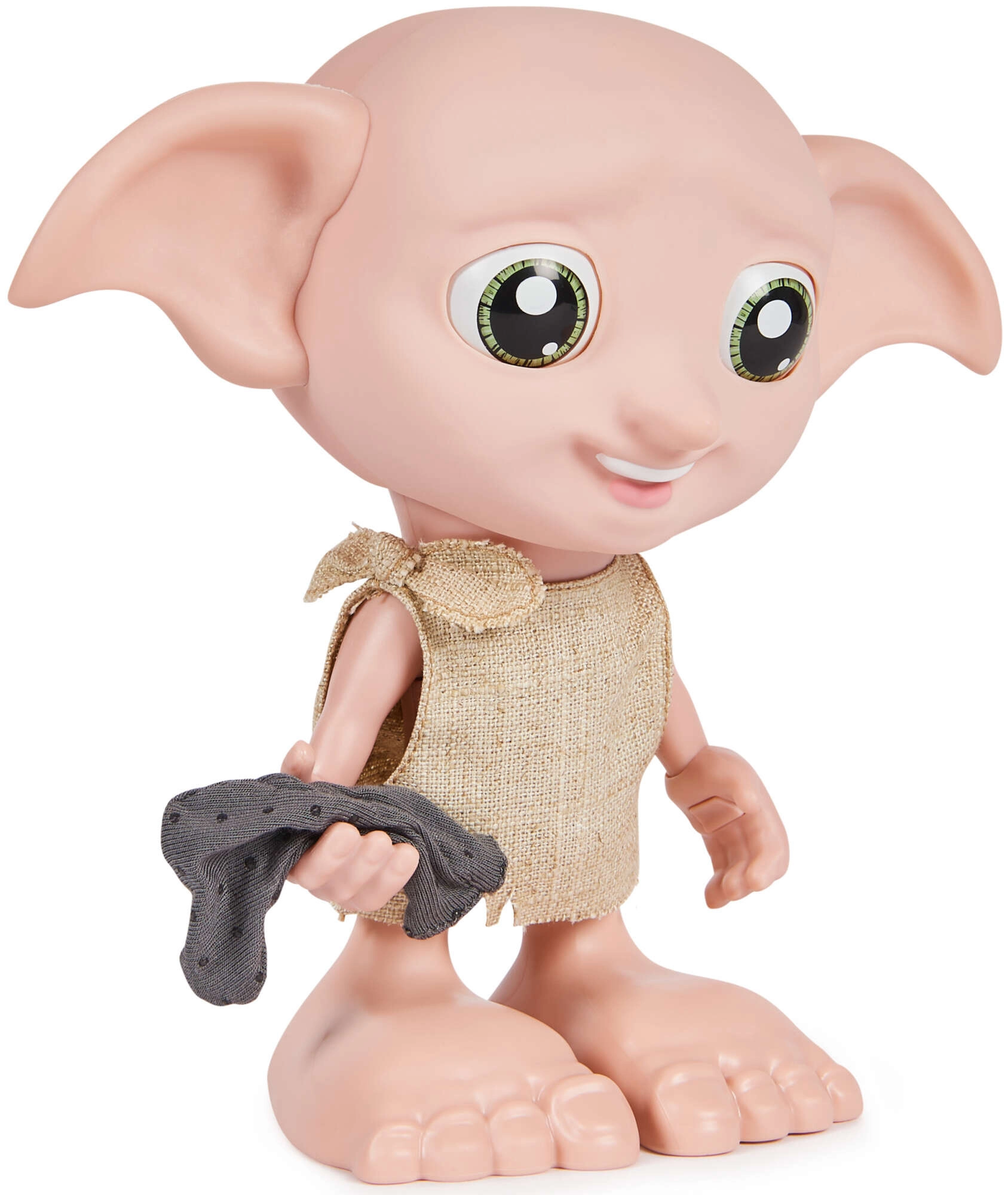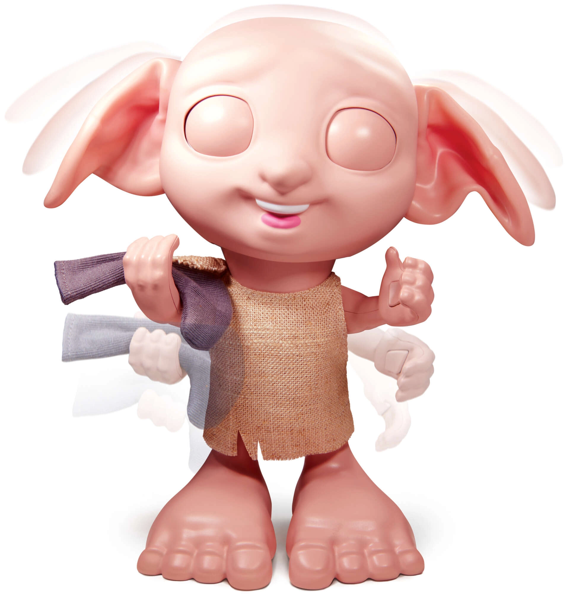 De interactieve figuur DOBBY vangt het filmpersonage getrouw – grote groene ogen, opvallende oren en een eenvoudige stoffen tuniek. Dankzij de gearticuleerde ledematen en het gezicht kun je hem eenvoudig in verschillende poses zetten om mee te spelen of tentoon te stellen. Met één druk op de knop op de linkerarm activeer je 35 zinnen en melodieën uit de toverwereld.