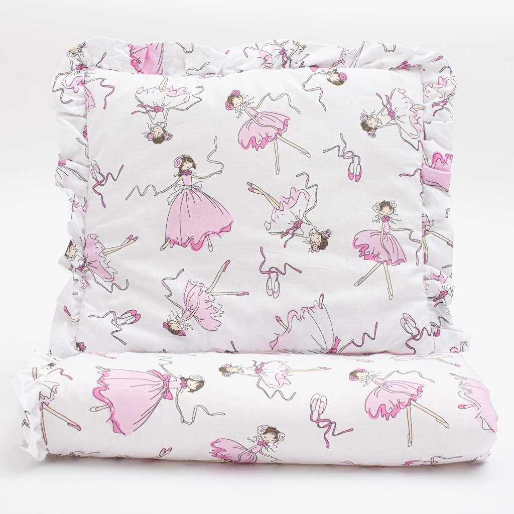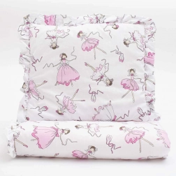 De schattige katoenen kinderwagenset New Baby Ballerina Bella biedt je baby comfort en warmte. Bevat een kussentje en een dekentje met volant en een ballerina-opdruk, gevuld met anti-allergische vezels. Gemaakt van hoogwaardig 100% katoen, dat zacht is voor de gevoelige huid en gemakkelijk te onderhouden.