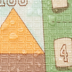 Elke zijde heeft een andere print – diertjes, huisjes en cijfers. Stimuleert nieuwsgierigheid, leren en past mooi in elk interieur.