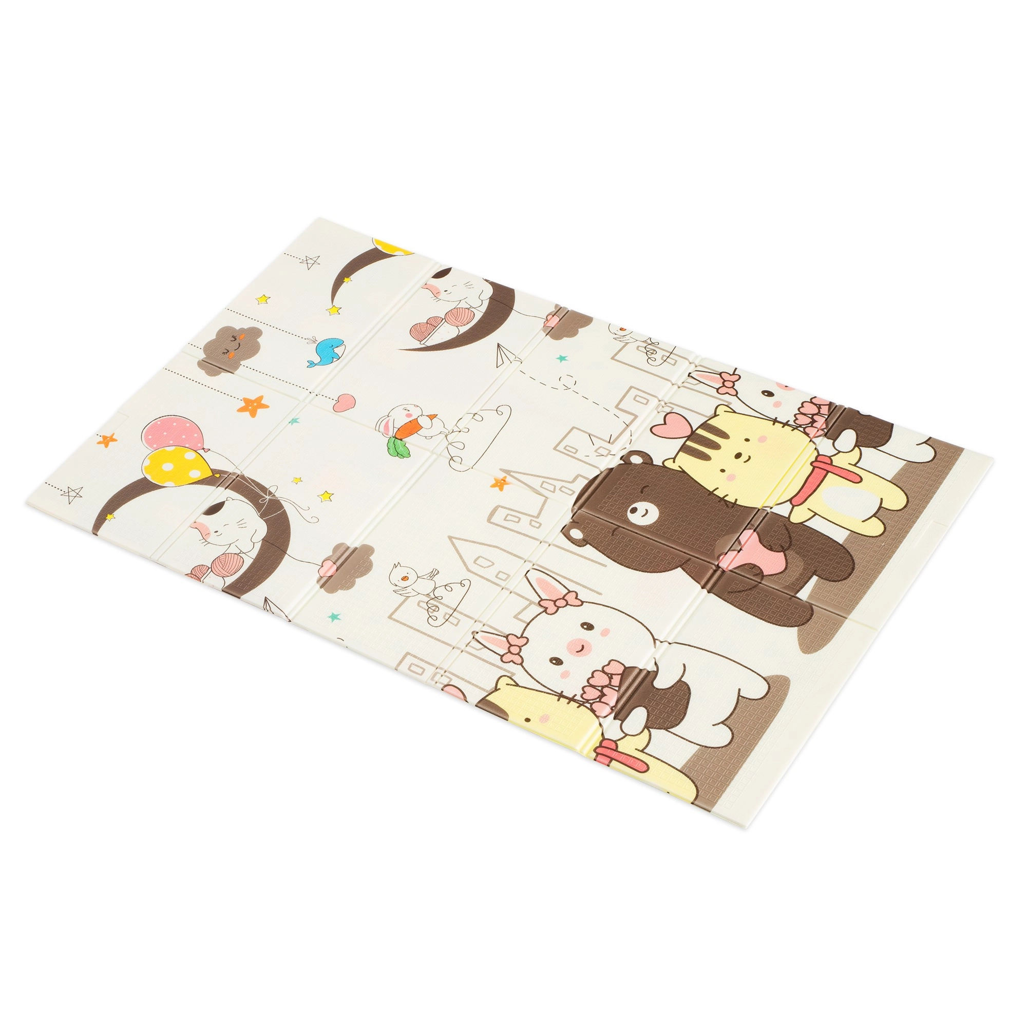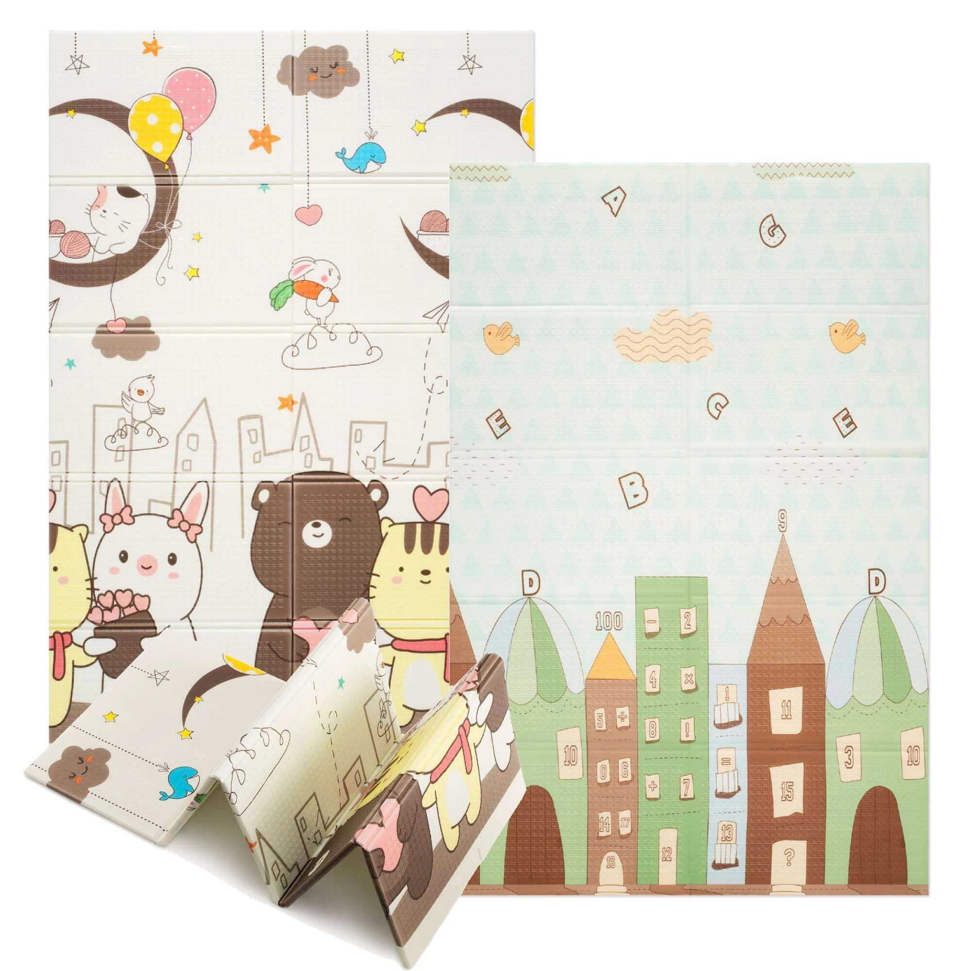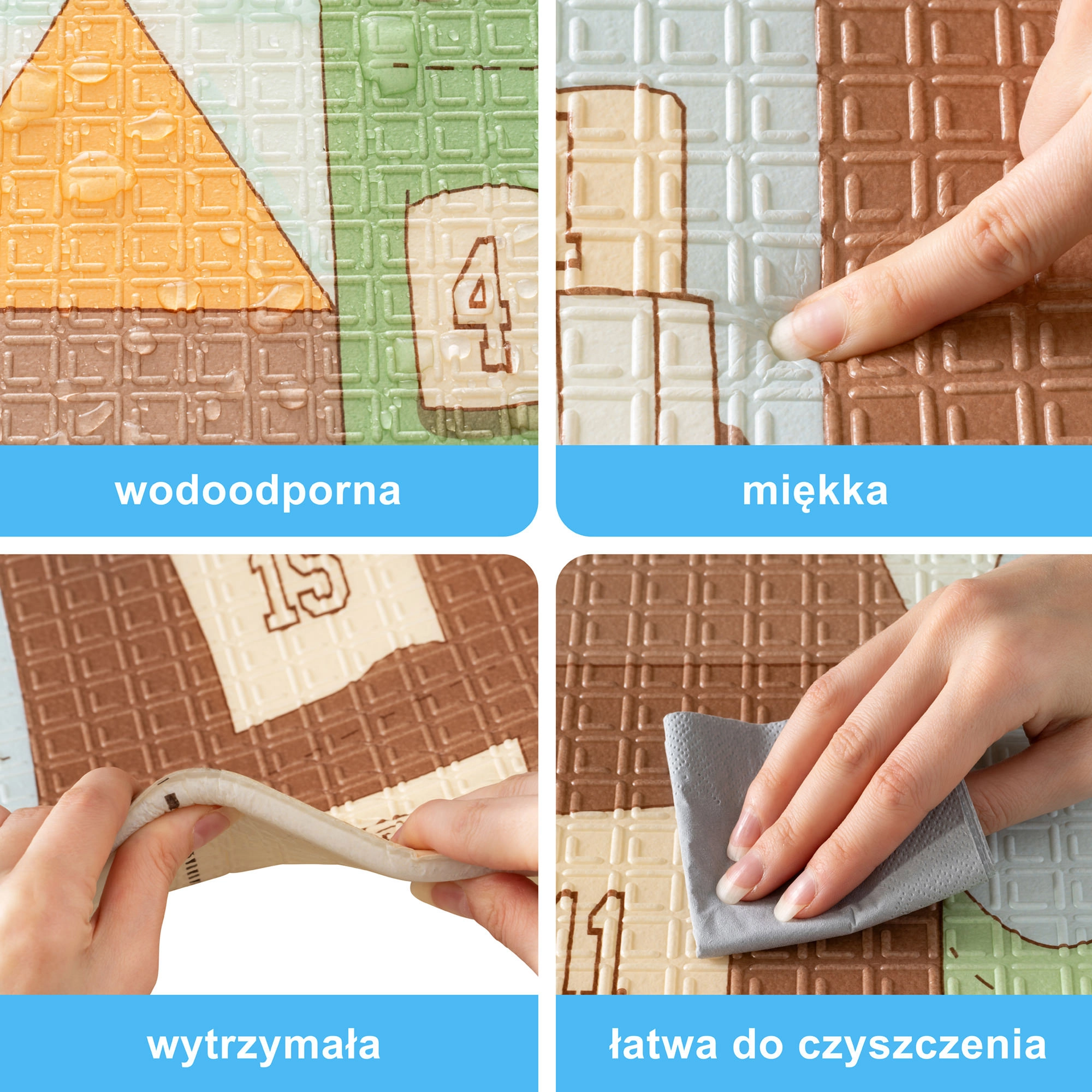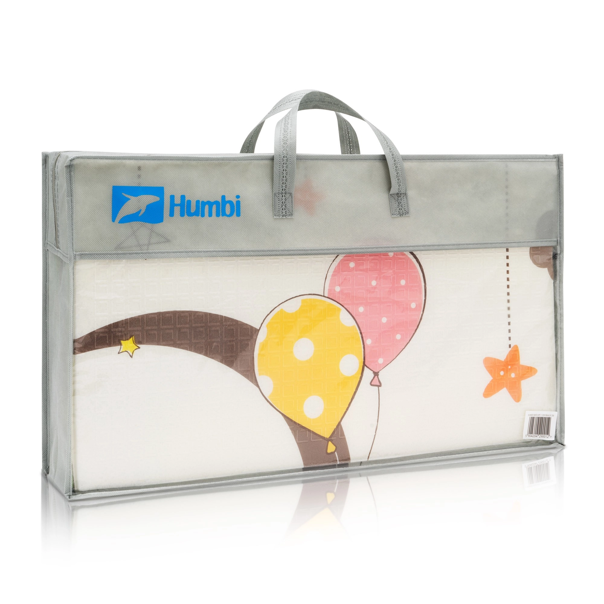 De grootformaat HUMBI-speelmat van premium XPE-schuim creëert een comfortabele en hygiënische plek voor baby’s en grotere kinderen. Dankzij de dikte van 0,8 cm dempt hij schokken uitstekend, isoleert hij tegen kou en het fijn reliëf, anti-slip oppervlak ondersteunt veilig leren kruipen en lopen. Met het dubbelzijdige design en de schattige motieven van diertjes, huisjes en cijfers fleurt hij elke kinderkamer of woonkamer op.