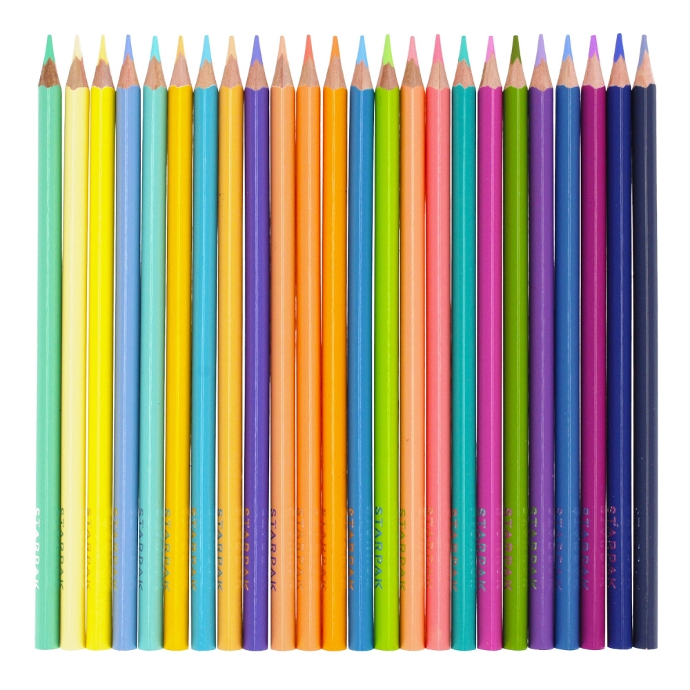 Deze set van 24 kleurpotloden in populaire pasteltinten stimuleert de creativiteit van kinderen en volwassenen. Dankzij de driekantige ergonomie liggen de potloden comfortabel in de hand, ondersteunen ze een correcte grip en verminderen ze handvermoeidheid bij langer tekenen.
