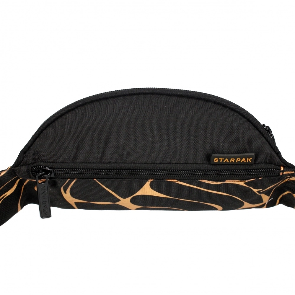 Praktische en stijlvolle heuptas STARPAK uit de Golden-serie, ideaal voor wandelingen en uitstapjes. Biedt twee veilige ritsvakken, een verstelbare riem voor dragen in de taille of crossbody, en een duurzaam textielmateriaal dat gemakkelijk te reinigen is. Het hoofdvak is verrassend ruim – er past zelfs een klein flesje in. Een geweldige keuze voor kinderen vanaf 3 jaar en voor dagelijks licht gebruik.