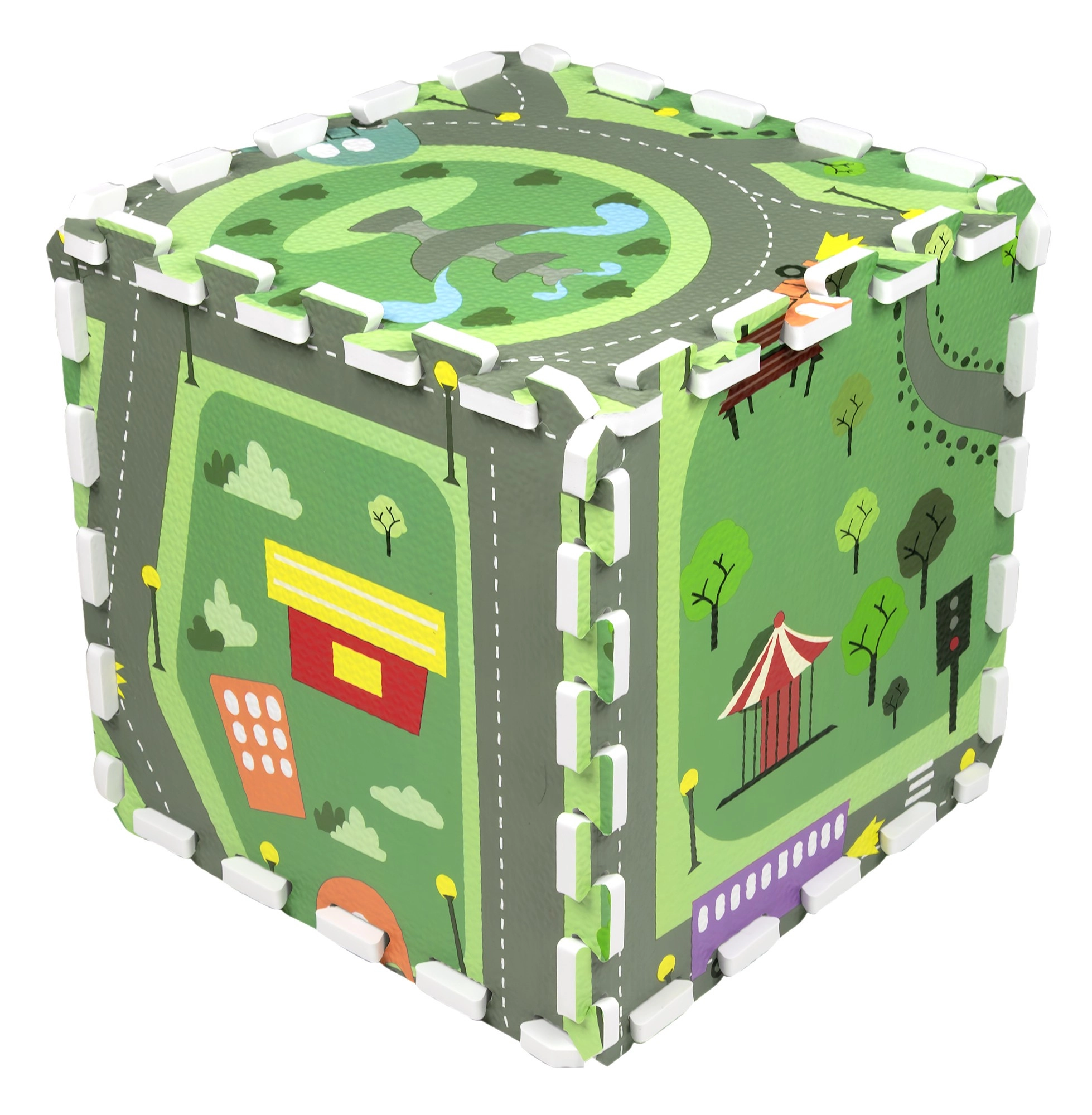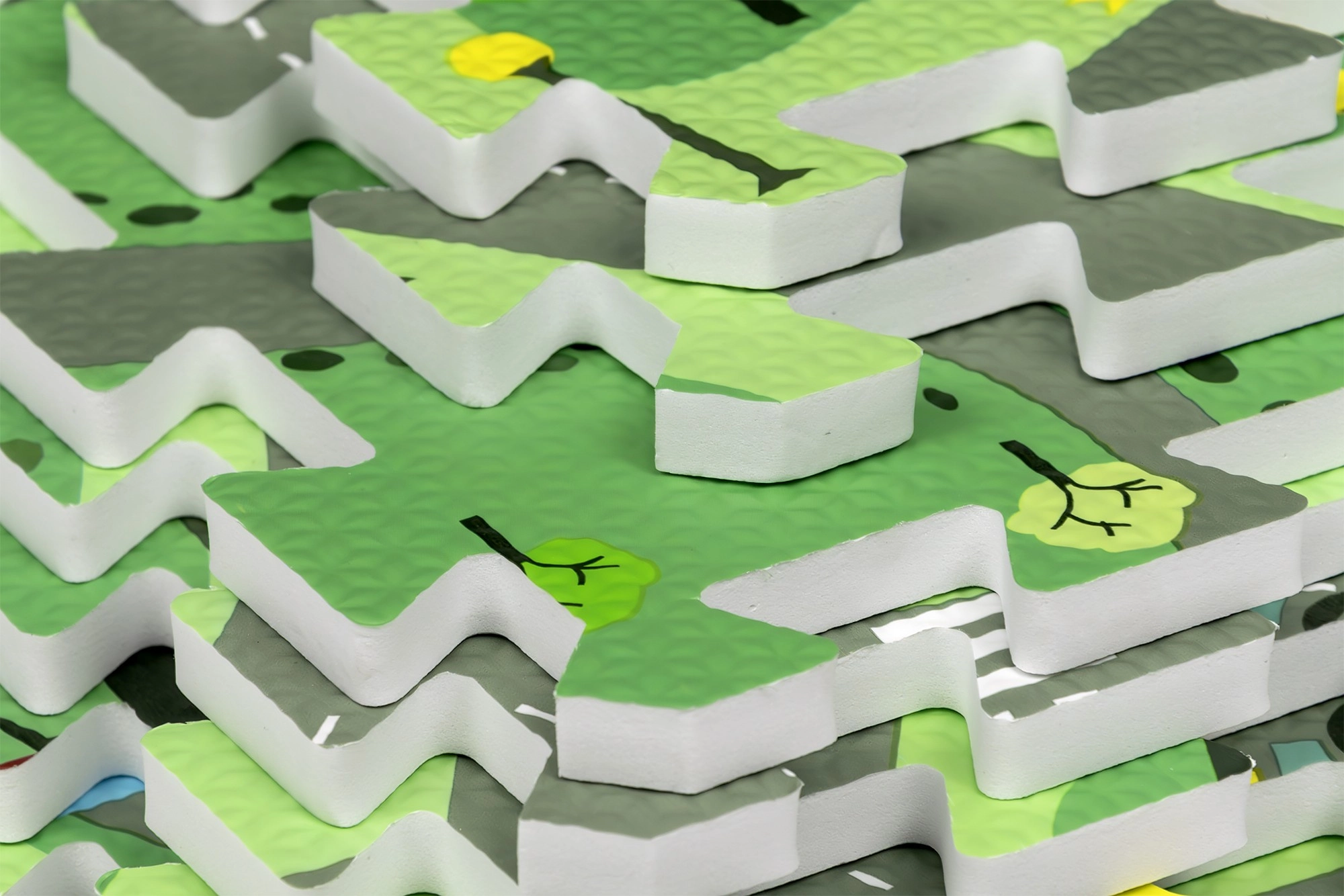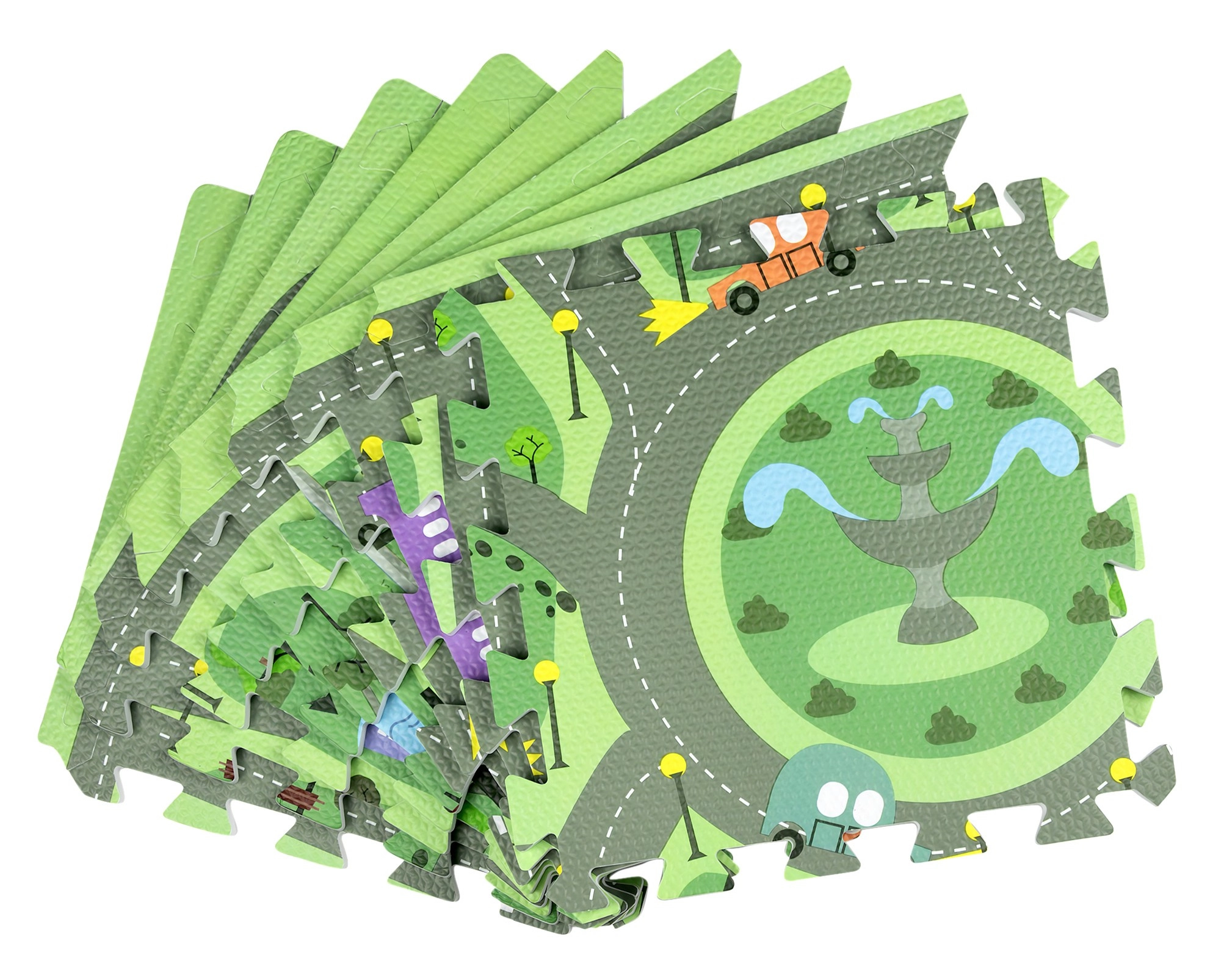 Creëer voor je kind een comfortabel en hygiënisch speelplekje. De mat van veerkrachtig EVA-schuim is vrij van ftalaten, formamide, PVC en BPA, heeft een antislip oppervlak en subtiele reliëfs voor zekerdere eerste stapjes. Het zachte stadsstratenmotief met rotonde, parken, vijver en gebouwen prikkelt de fantasie en nodigt uit tot ritjes met autootjes en creatief spel met figuurtjes.