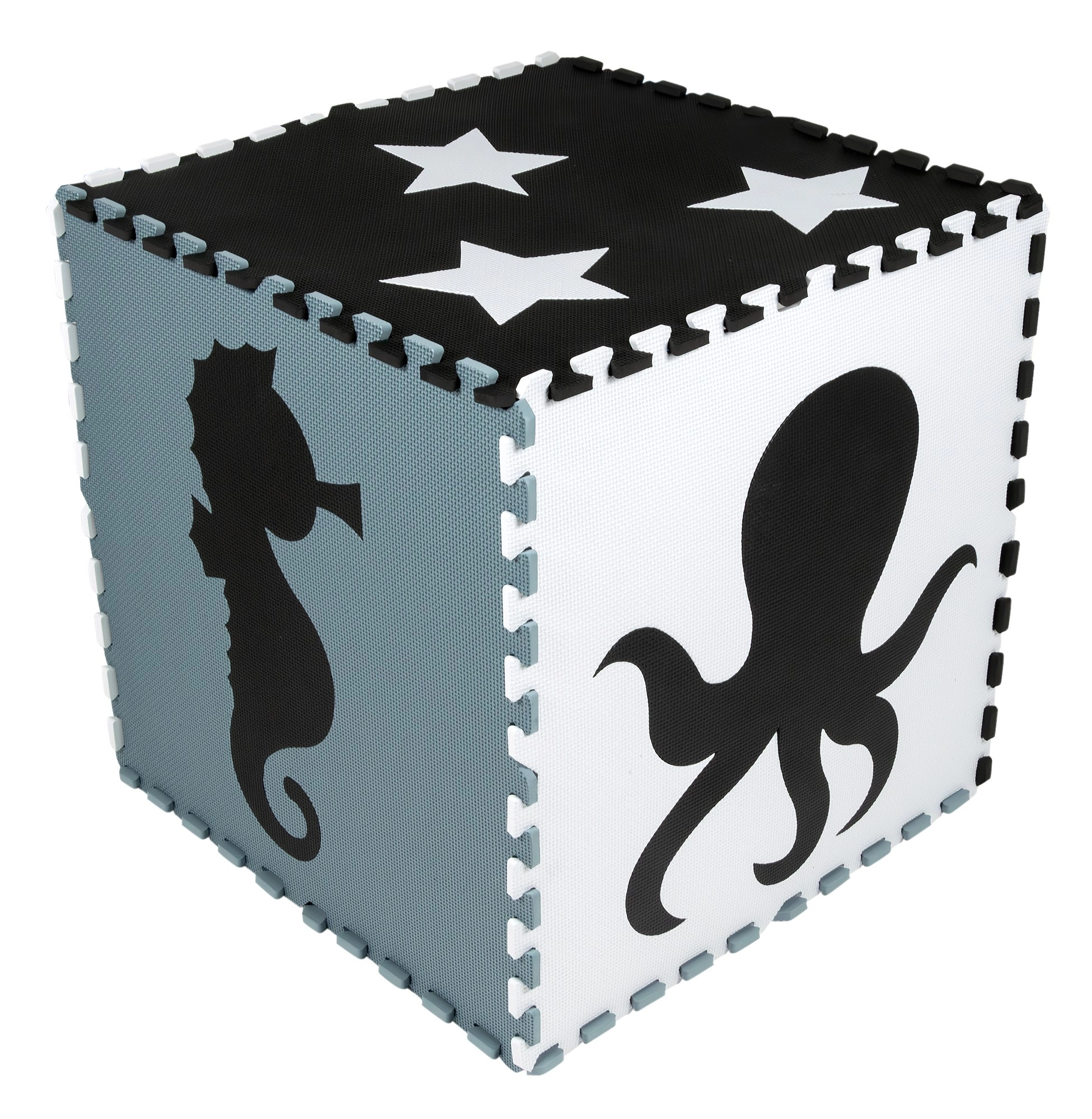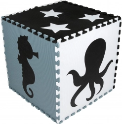 Neutrale, rustige kleuren leiden kinderen niet af tijdens het spelen en passen in elk interieur – kinderkamer, speelkamer of kinderopvang. Uitneembare middenstukken met vormen (zeepaardje, schildpad, vis, kwal, walvis, octopus, dolfijn, sterren en krab) ondersteunen de ontwikkeling van motoriek en het leren van dieren. Onderdelen kunnen uitgebreid worden (binnen hetzelfde model) en tot een kubus of andere 3D‑vormen worden opgebouwd.