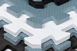 Puzzels kunnen worden gekoppeld tot een grotere mat of worden opgebouwd tot 3D‑vormen, bijvoorbeeld een kubus. Gemakkelijk op te bergen en snel te monteren.