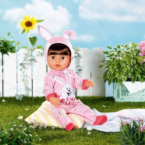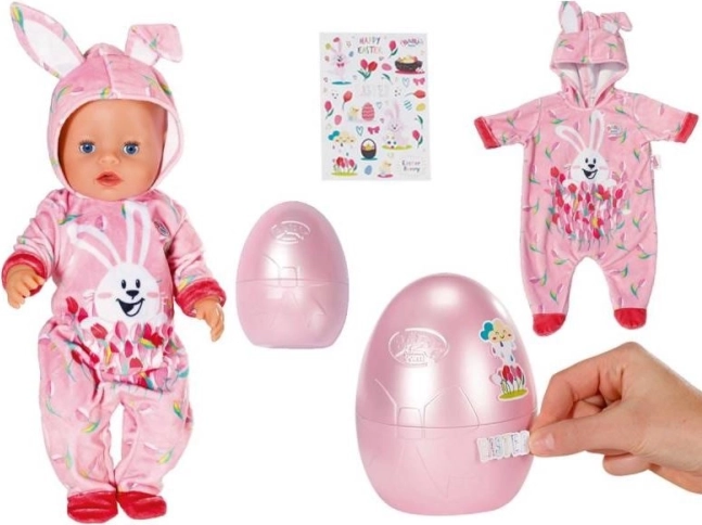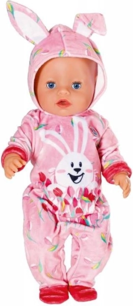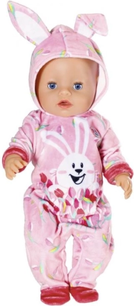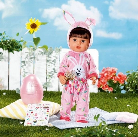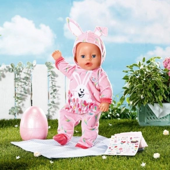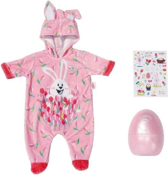 Het BABY born paasei is een perfect verrassinkje voor alle kleine poppenliefhebbers. In het roze ei zit een schattige jumpsuit, versierd met een print van het konijntje Benno en lentetulpen. De capuchon heeft vrolijke konijnenoren, die de outfit een speelse look geven.