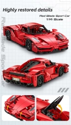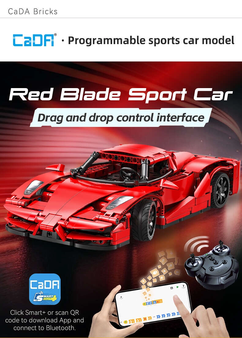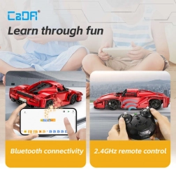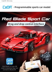 Stap in de wereld van technische bouwsets met het model CaDA Red Blade – een gedetailleerde sportauto met afstandsbediening. De rode carrosserie met zwarte accenten, realistische proporties en bewegende delen zullen zowel jonge als oudere fans bekoren. Bedien de wagen met de meegeleverde RC-controller of je smartphone via Bluetooth en geniet van soepel rijden op diverse ondergronden.