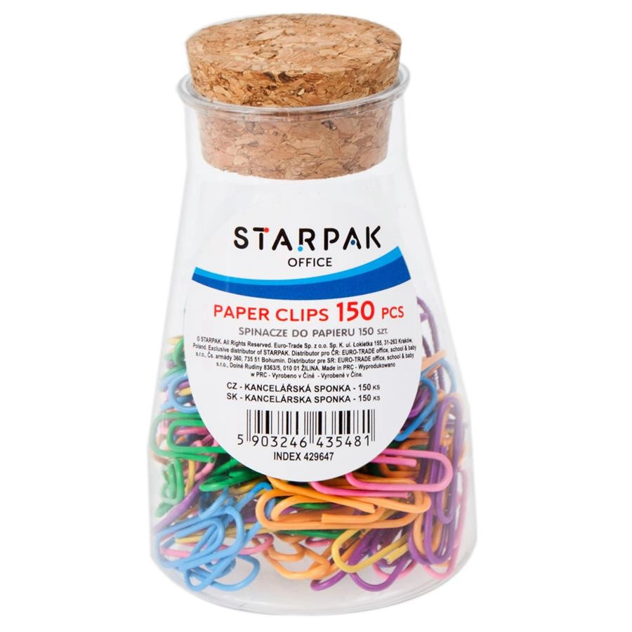 Praktische set paperclips in frisse kleuren voor overzichtelijke organisatie van documenten. De verpakking bevat 150 stuks in een stijlvolle pot met kurken stop. Ideaal voor kantoor, school en thuis, duurzaam en herbruikbaar.
