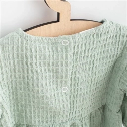 Stijlvolle en comfortabele mousseline kinderjurk in een moderne oversized pasvorm met 3/4 mouw en drukknoopsluiting aan de achterkant. Gemaakt van hoogwaardige, ademende en duurzame mousseline voor dagelijks gebruik en feestelijke momenten. Zacht 100% katoenen materiaal met een prachtige textuur, ideaal voor lente, herfst en koelere dagen.