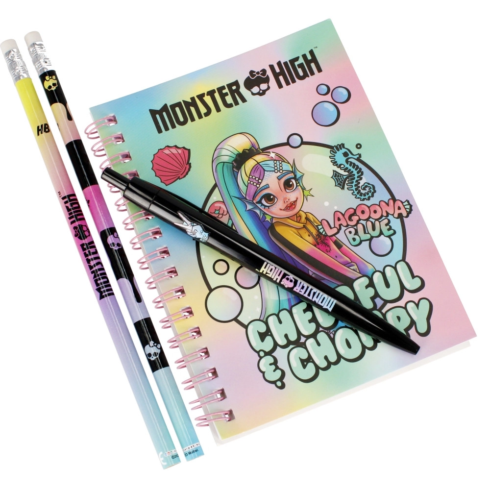 Deze complete schoolset met MONSTER HIGH-motief biedt alles wat kinderen nodig hebben voor schrijven, tekenen en het organiseren van aantekeningen. Dankzij het spiraalgebonden schrift sla je pagina’s gemakkelijk om en blijven ze vlak liggen, terwijl het transparante etui alle hulpmiddelen netjes en overzichtelijk bij elkaar houdt.
