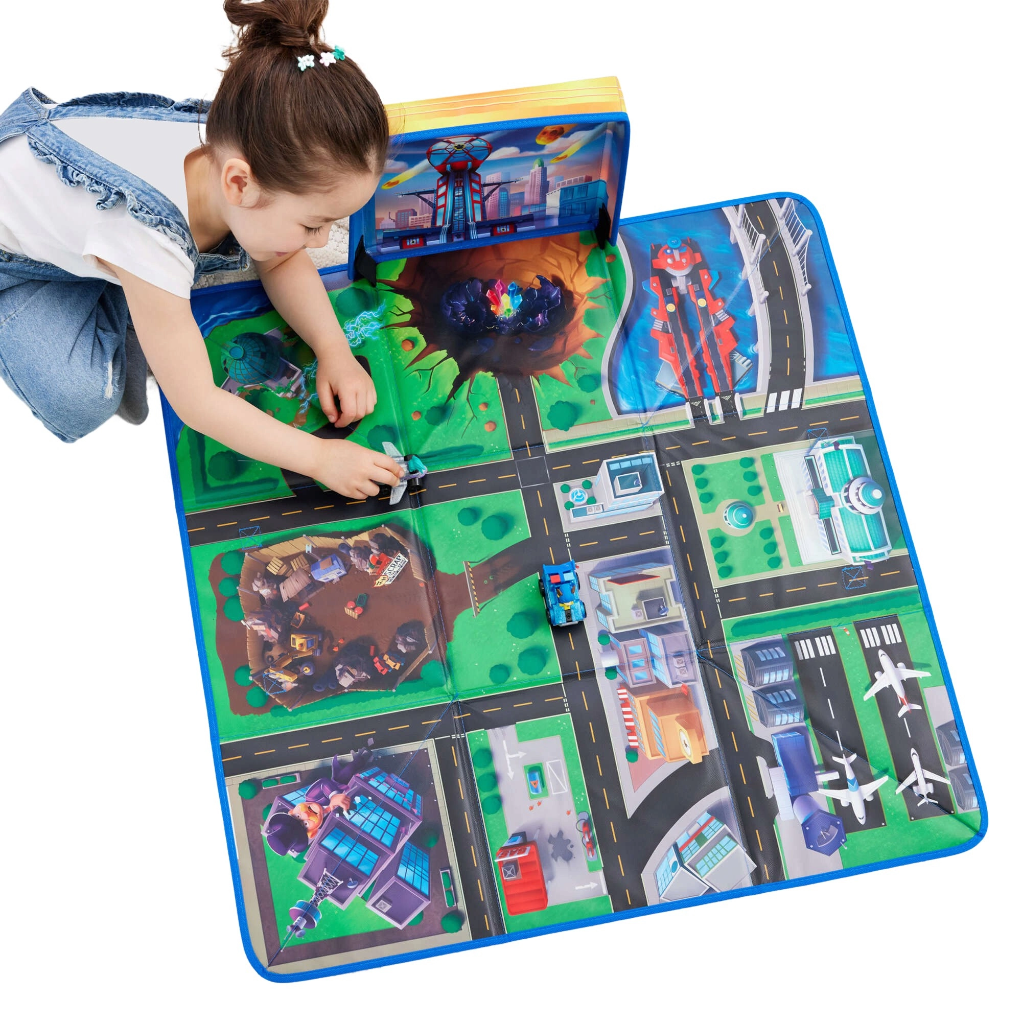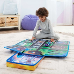Deze opvouwbare mat, geïnspireerd op de film PAW Patrol: The Mighty Movie, brengt de hele Avonturenstad naar de kinderkamer – straten, kruispunten, een brug en een luchthaven. Het oppervlak is zacht en kleurrijk en nodigt uit tot fantasierijk spel met voertuigen en figuren van favoriete helden.