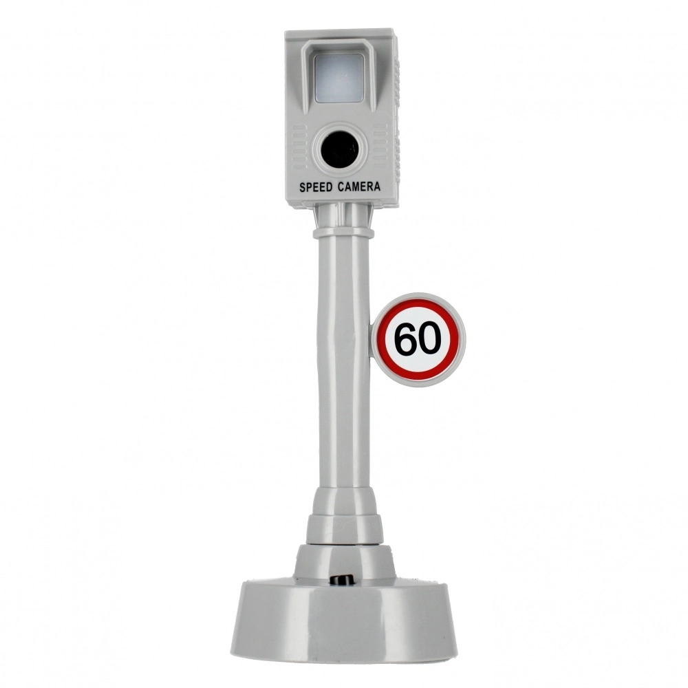 Kies voor een verkeerslicht dat afwisselt tussen rood, oranje en groen, of voor een snelheidsradar met een authentieke “klik” en lichteffect.