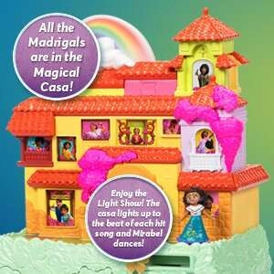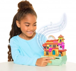 Oplichtende ramen, openslaande deuren en een dansende Mirabel brengen een scène uit ENCANTO tot leven. Schuif simpelweg de vlinder en het huis vult zich met geliefde melodieën.