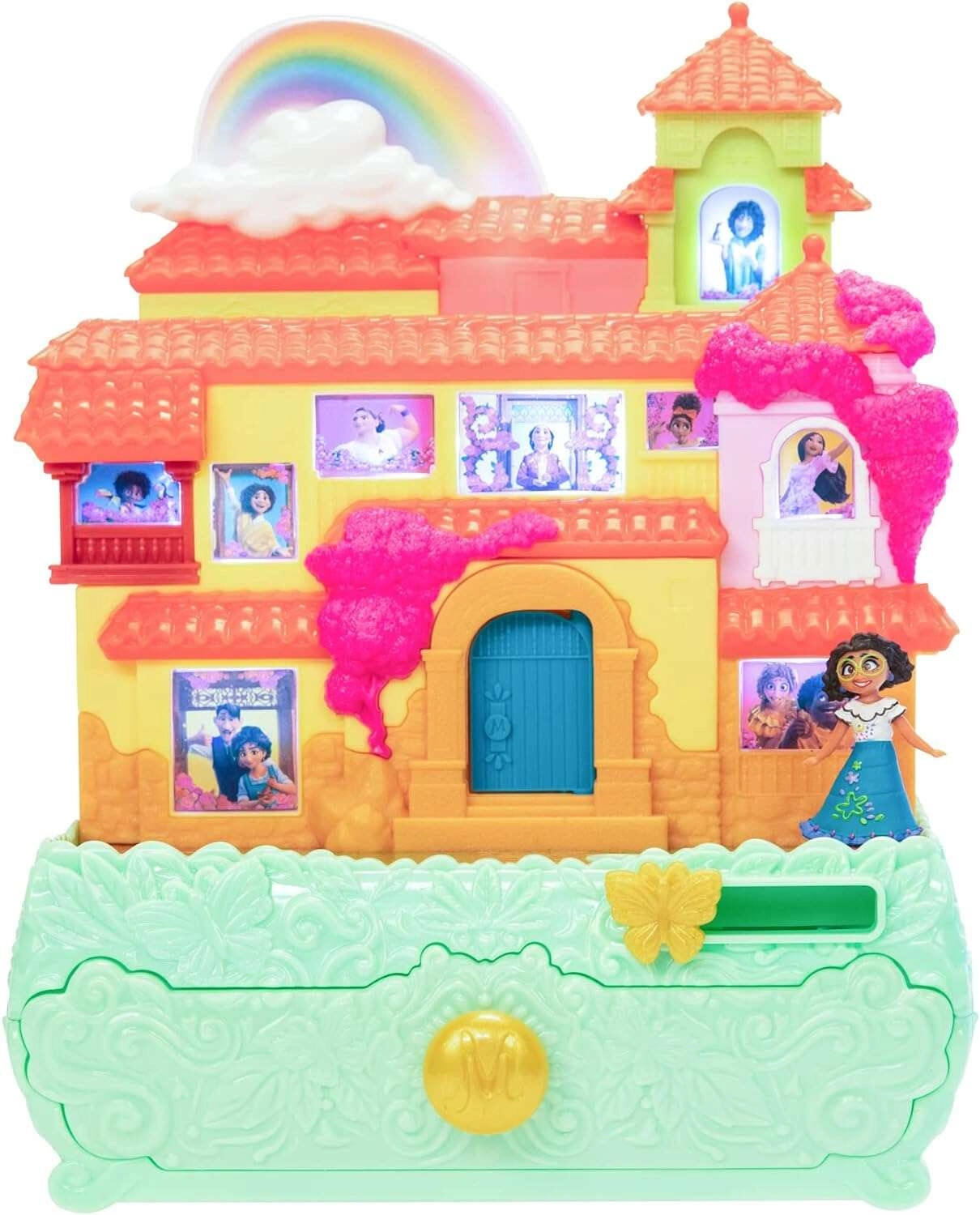 Deze kleurrijke sieradendoos, geïnspireerd op het huis van de familie Madrigal, brengt de magie van ENCANTO rechtstreeks naar de kinderkamer. Na het inschakelen lichten de ramen op, gaan de deuren open, begint Mirabel te dansen en klinken bekende melodieën uit de film. In de basis zit een praktische lade voor kleine spulletjes en sieraden, en er is een ring met vlinder inbegrepen.