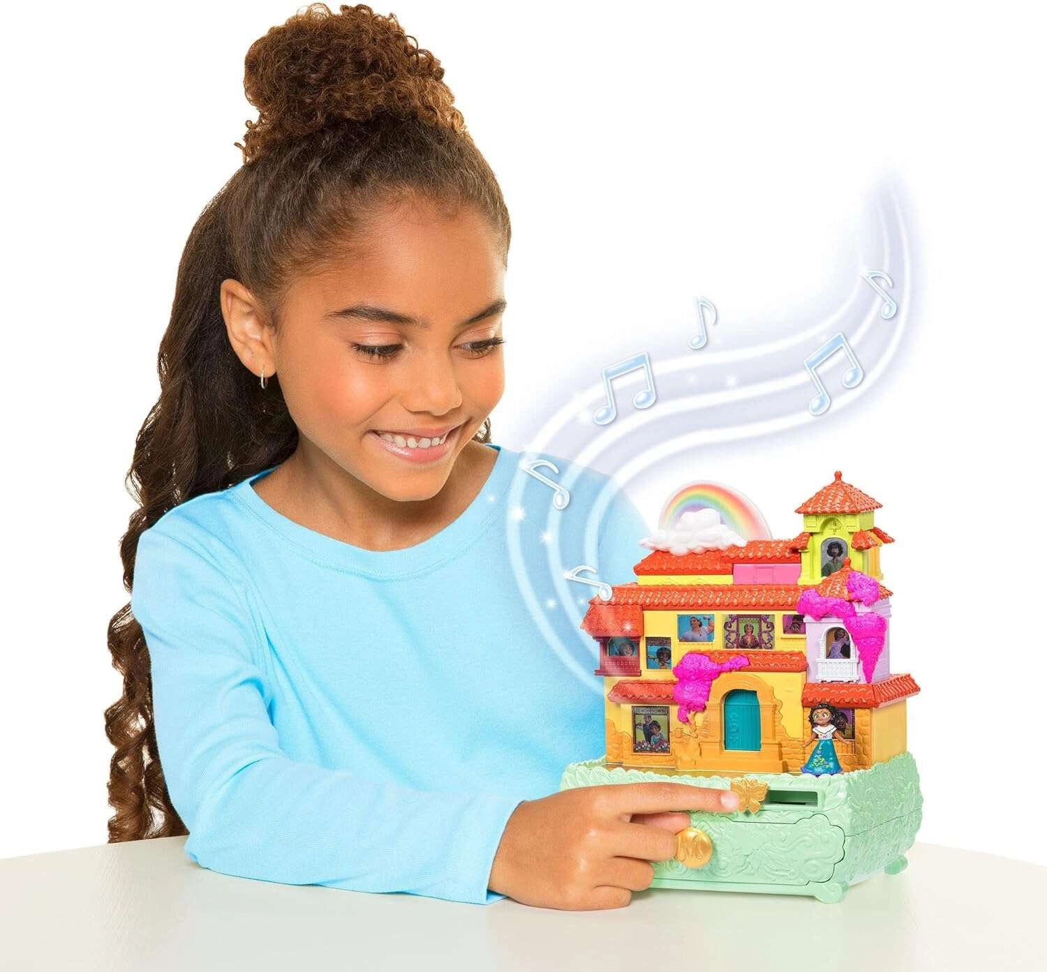 De muziekfunctie biedt 3 favoriete nummers in het Engels: The Family Madrigal, Surface Pressure en We Don’t Talk About Bruno. De bediening is eenvoudig – schuif de vlinder om te starten. Dankzij lichteffecten en de rijke details van de casita is dit sieradendoosje perfect voor creatief spel en als decoratie.