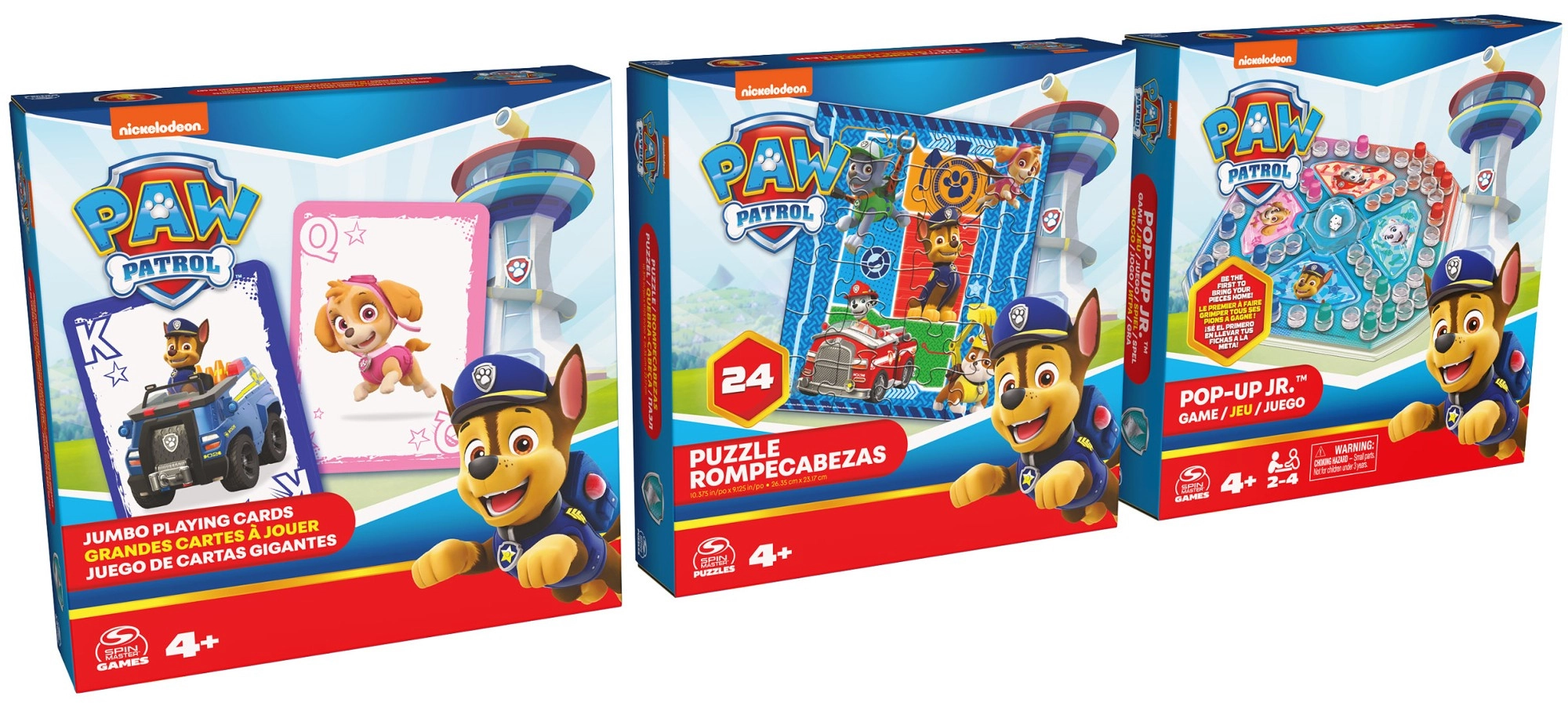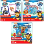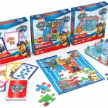 De 3-in-1 set met PAW PATROL-thema zorgt voor uren speelplezier voor jonge fans van de geliefde pups. Kinderen kunnen de kleurrijke puzzel (24 stukjes) leggen, racen in het pop-up spel met een dobbelsteen onder de transparante koepel en geheugen en reactiespeed trainen met jumbo kaarten met grote illustraties van de helden.