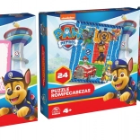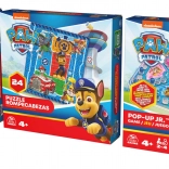 Het bordspel heeft een kunststof speelbord verdeeld in vier zones met groeven voor pionnen en een praktische pop-o-matic dobbelsteen in het midden voor eenvoudig en leuk “gooien”. De puzzel vormt na het leggen een afbeelding met de PAW PATROL-pups van 26,35 × 23,17 cm. De jumbo kaarten zijn perfect voor kleine handjes en bieden verschillende spelvarianten.
