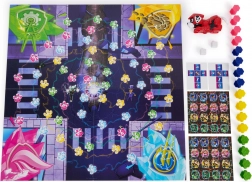 Groot bord van 50,8 × 50,8 cm met themavakjes en symbolen uit Adventure City voor extra overzicht en speelplezier.