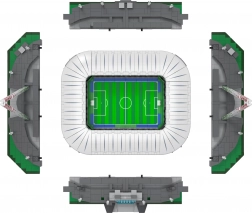 Zes los te koppelen secties – het veld, vier tribunes en het dak – maken snel uit elkaar halen en een gedetailleerde blik in het interieur mogelijk.