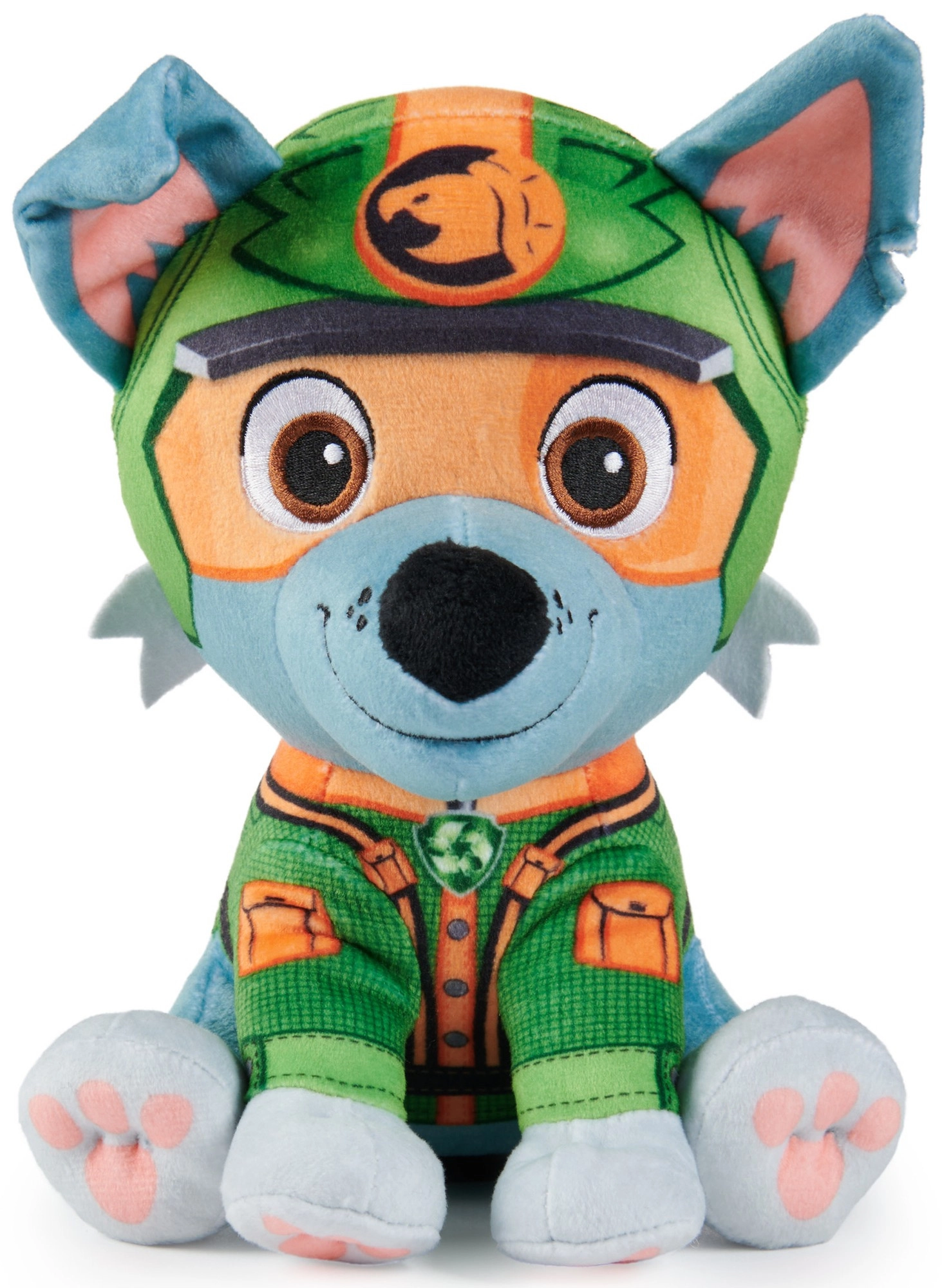 Geborduurde ogen, pootjes en het groene junglepakje geven de geliefde recycleheld uit de serie PAW PATROL getrouw weer.