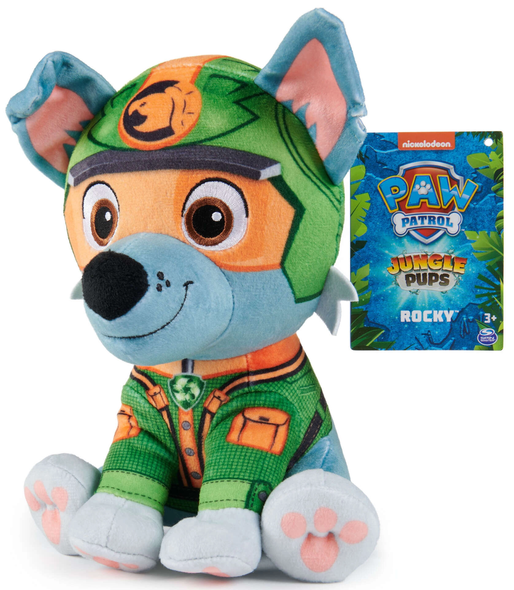 Breng de favoriete held uit de serie PAW PATROL in huis – de pluchen hond Rocky in zijn groene jungle-uitrusting. Dankzij de zachte vulling, het aangename oppervlak en het gedetailleerd uitgewerkte pakje is hij ideaal om mee te knuffelen en om overdag én voor het slapengaan mee te spelen.